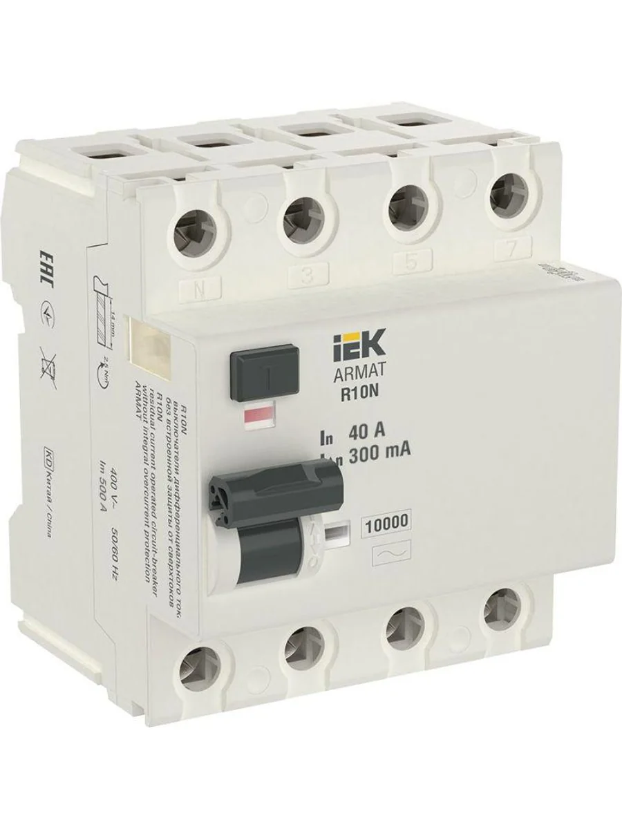 Выключатель дифференциального тока (УЗО) 4п 40А 300мА тип AC ВДТ R10N ARMAT IEK AR-R10N-4-040C300 - купить в KeepBuilding | KeepBuilding
