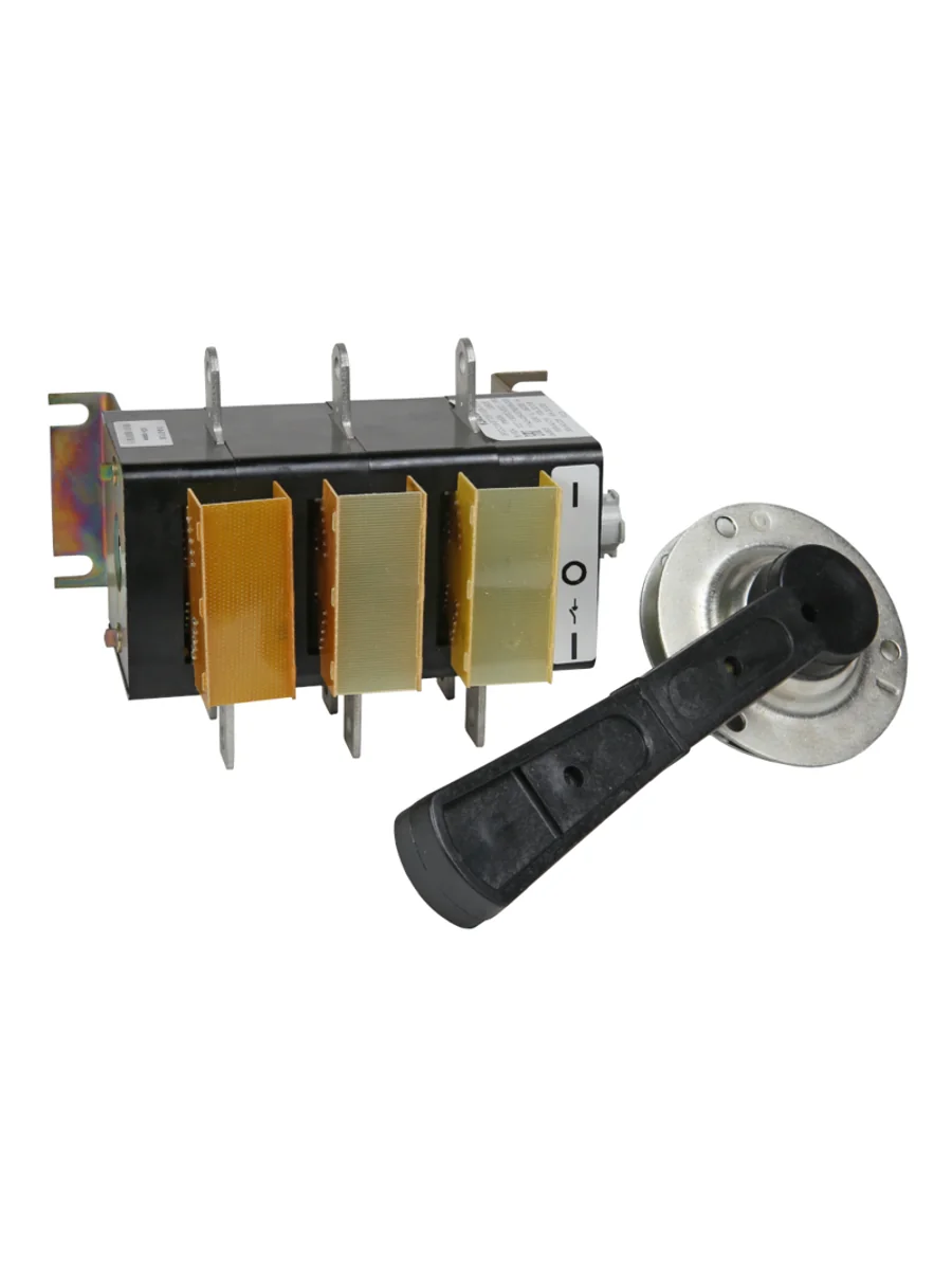 Выключатель-разъединитель 3 полюсный на номинальный ток 100 А, в котором установлена съемная рукоятка.