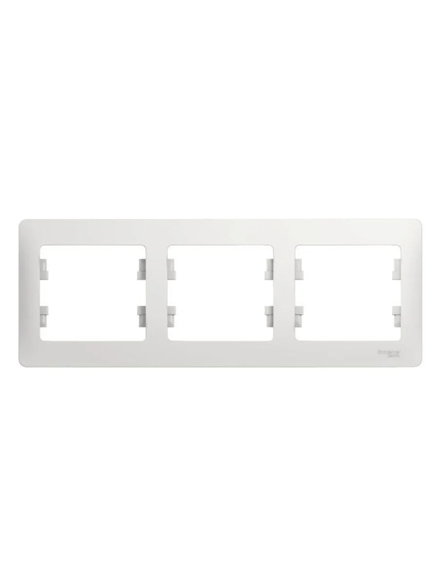 Рамка Systeme Electric серии Glossa (цвет белый) трёхместная. - Устанавливается в горизонтальном положении. - Выполнена из материала PС+ASA, стойкого к УФ-излучению и появлению царапин. - Позволяет гармонично вписать электроустановочное изделие в интерьер помещения (ранее Schneider Electric MGU2.006.18, NU200618).