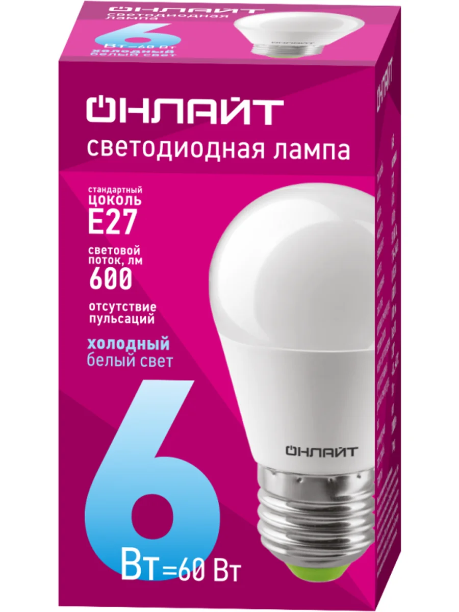 Лампа светодиодная 61 138 OLL-G45-6-230-6.5K-E27 6Вт ОНЛАЙТ 61138 - купить в KeepBuilding | KeepBuilding