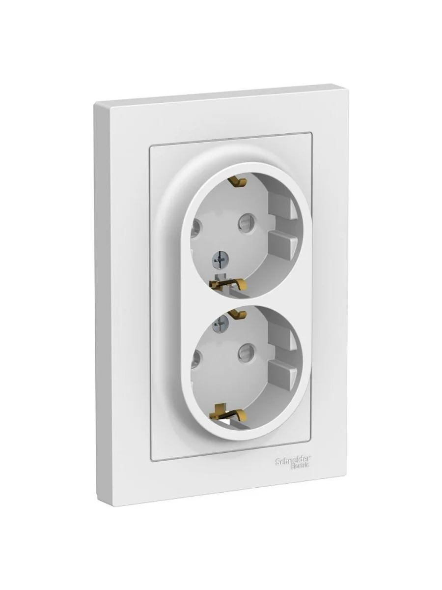 Розетка двойная в сборе Systeme Electric (ранее Schneider Electric) серии AtlasDesign в цвете белый с заземлением и шторками подходит для сетей 250 В, на ток 16 А. Пластик с ионами серебра обеспечивает антибактериальный эффект. Заземляющий контакт обеспечивает дополнительную защиту от удара электрическим током. Лицевые детали из качественного ABS-пластика, устойчивого к царапинам и УФ-излучению. Двойная розетка позволяет подключить два устройства в одном месте. Изделие поставляется в комплекте с рамкой того же цвета.