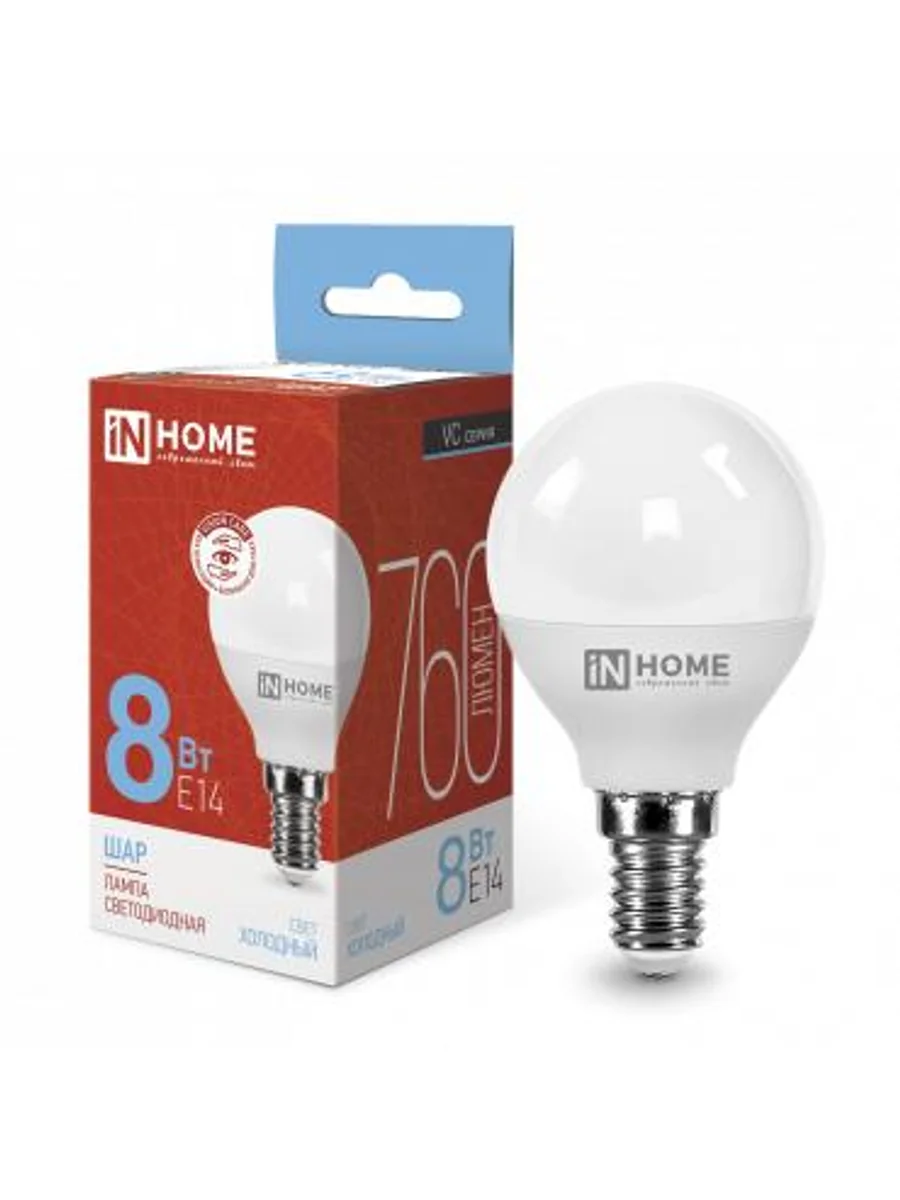 Лампа светодиодная LED-ШАР-VC 8Вт шар 6500К холод. бел. E14 760лм 230В IN HOME 4690612024882 - купить в KeepBuilding | KeepBuilding