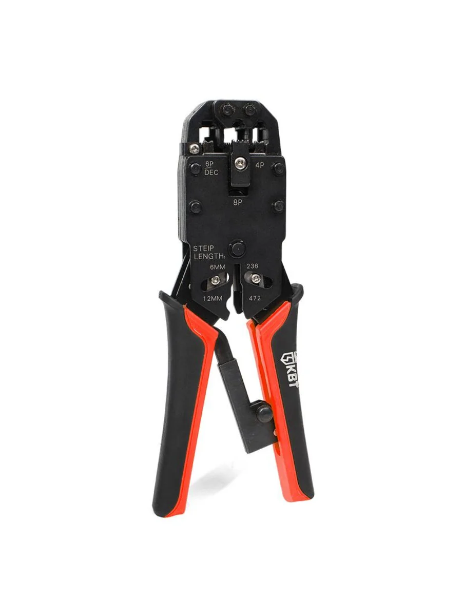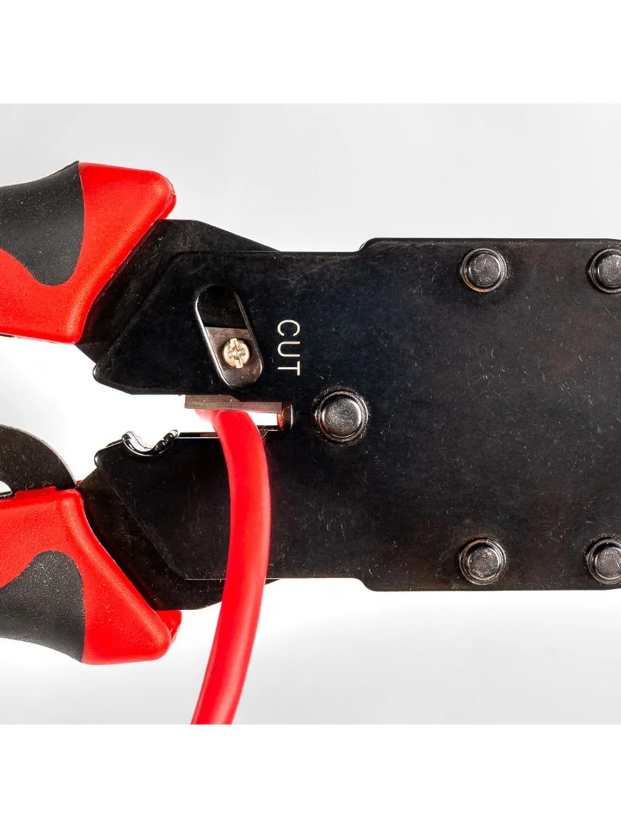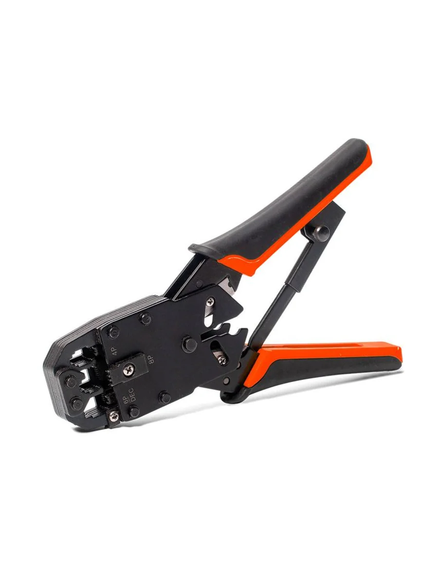 • 4 в 1: • обжим разъемов RJ • снятие изоляции с плоских телефонных проводов • снятие оболочки с круглых проводов типа UTP, STP • резка проводов • Параллельный ход пуансонов гарантирует профессиональное качество работ • 3 встроенные матрицы: 8Р, 6Р, 4Р • Обжим разъемов: • 8Р8С (RJ-45), 6Р6С (RJ-12), 6P4C (RJ-11), 6Р2С, 4P4C, 4P2C • Встроенный храповой механизм обеспечивает полный цикл опрессовки • Винт для экстренной разблокировки матриц • Покрытие корпуса: воронение • Надежный механизм в прочном металлическом корпусе • Двухкомпонентные нескользящие рукоятки • Вес: 530 г • Длина: 205 мм