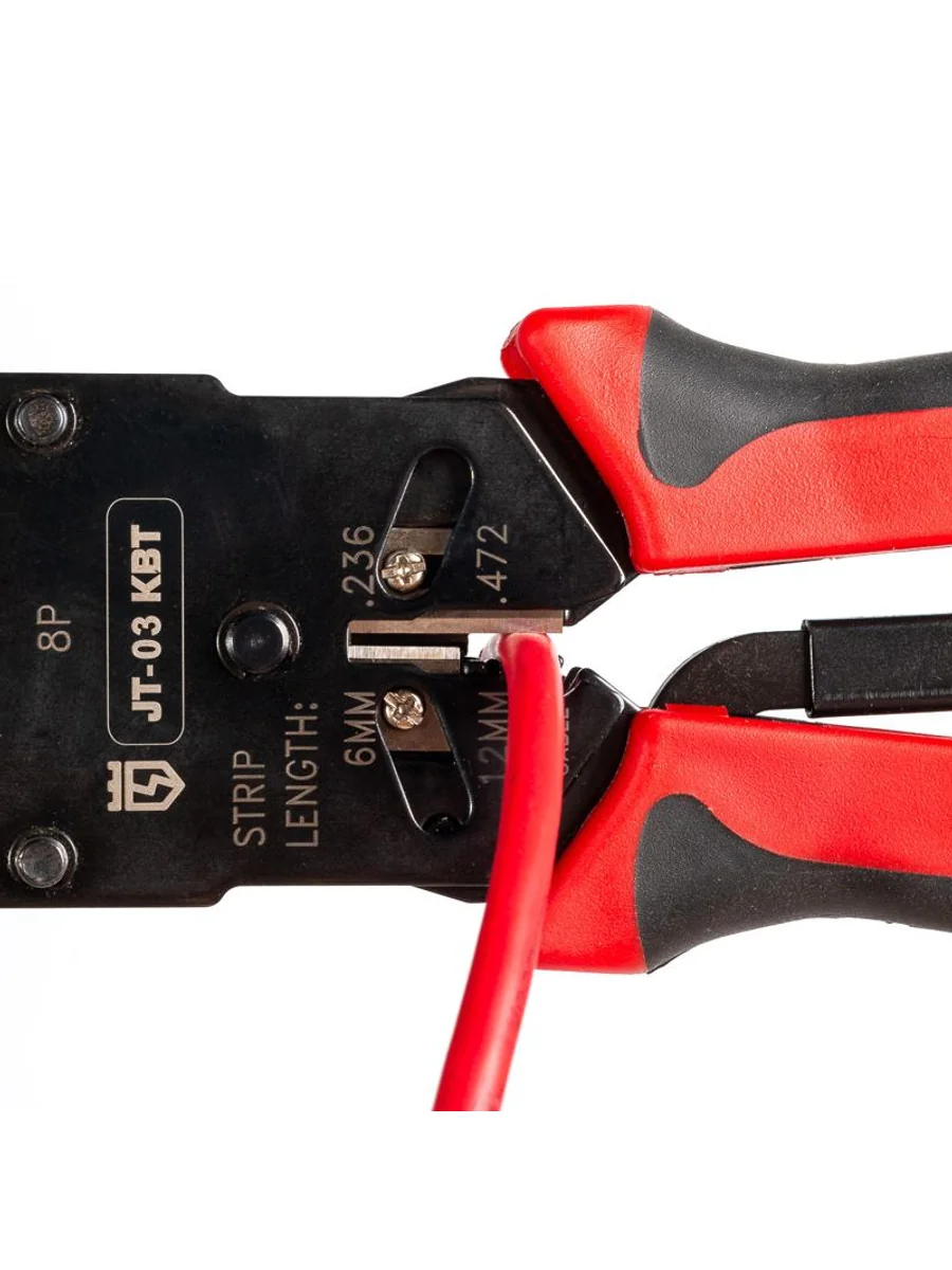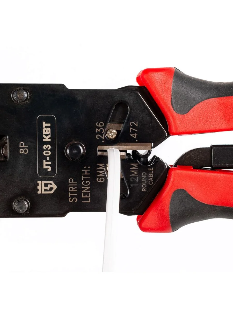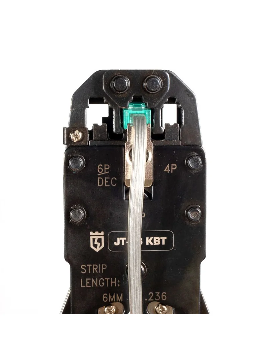 • 4 в 1: • обжим разъемов RJ • снятие изоляции с плоских телефонных проводов • снятие оболочки с круглых проводов типа UTP, STP • резка проводов • Параллельный ход пуансонов гарантирует профессиональное качество работ • 3 встроенные матрицы: 8Р, 6Р, 4Р • Обжим разъемов: • 8Р8С (RJ-45), 6Р6С (RJ-12), 6P4C (RJ-11), 6Р2С, 4P4C, 4P2C • Встроенный храповой механизм обеспечивает полный цикл опрессовки • Винт для экстренной разблокировки матриц • Покрытие корпуса: воронение • Надежный механизм в прочном металлическом корпусе • Двухкомпонентные нескользящие рукоятки • Вес: 530 г • Длина: 205 мм