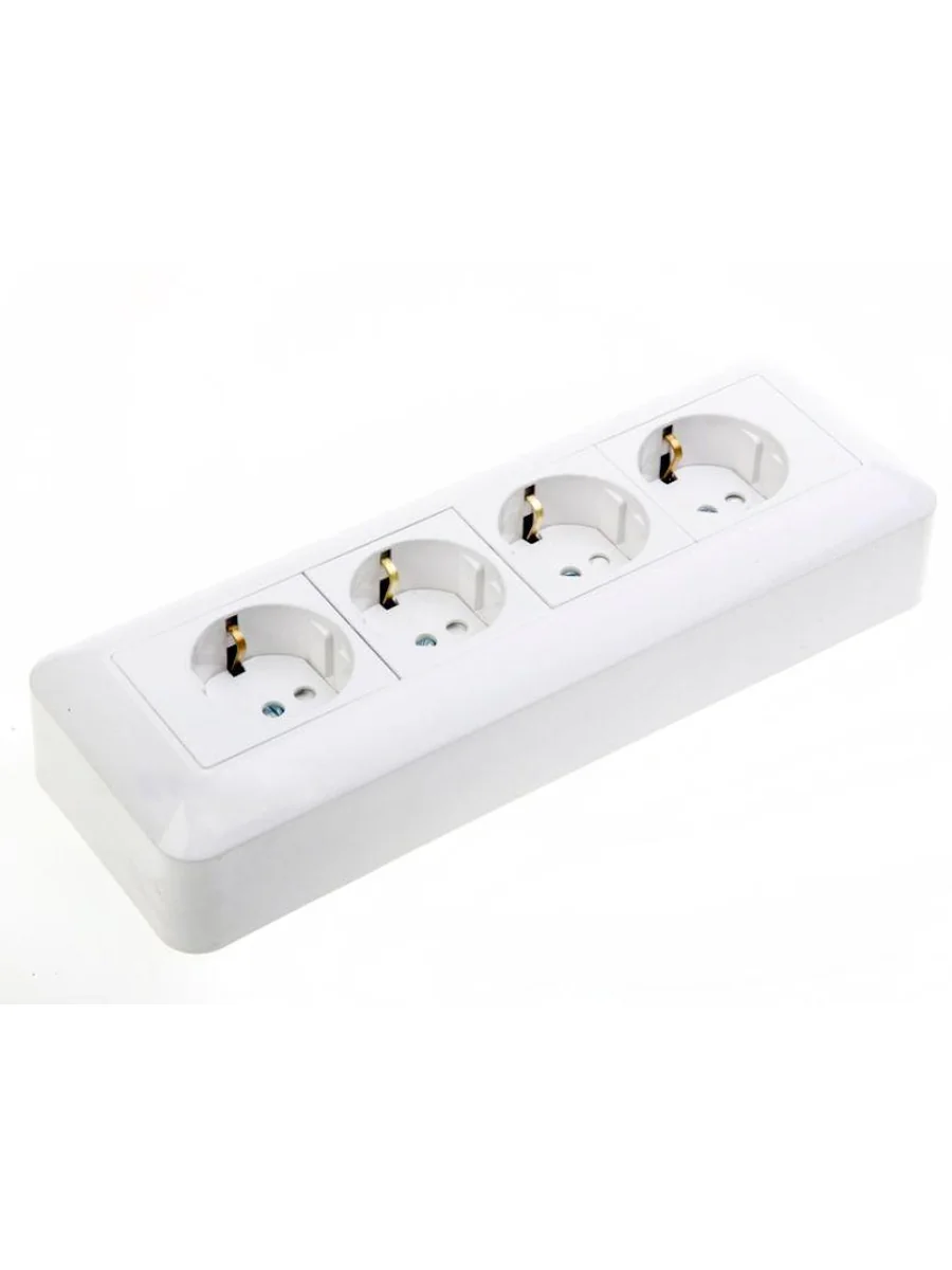 Розетка четырёхместная Systeme Electric (ранее Schneider Electric) BLANCA (открытой установки, цвет белый) с заземлением и со шторками, с монтажной стальной пластиной предназначена для сетей до 250 В на ток до 16 А. - Четырёхместная розетка позволяет подключить четыре устройства в одном месте. - Заземляющий контакт обеспечивает дополнительную защиту от удара электрическим током. При наличии заземления электрический потенциал уходит в землю, защищая человека. - Оптовая упаковка, сделано в России.