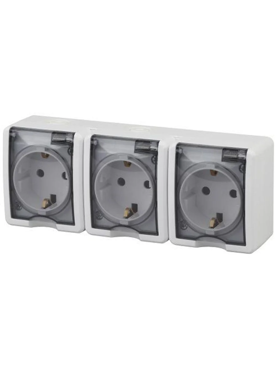 Розетка тройная IP54 3-я серии Эра Эксперт открытой установки цвет белый 11-2405-01. Номинальные характеристики 16А 250В. Устройство выполнено из качественного поликарбоната, оснащёно уникальными винтовыми клеммами ЭКСПЕРТ для максимально качественного зажима кабеля в механизме.