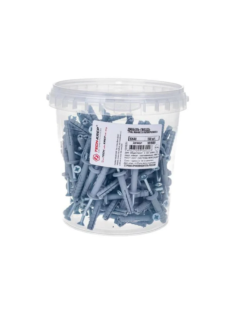 Дюбель-гвоздь 6х40 с грибовидной манжетой полипропилен (уп.150шт) ведро Tech-Krep 101989