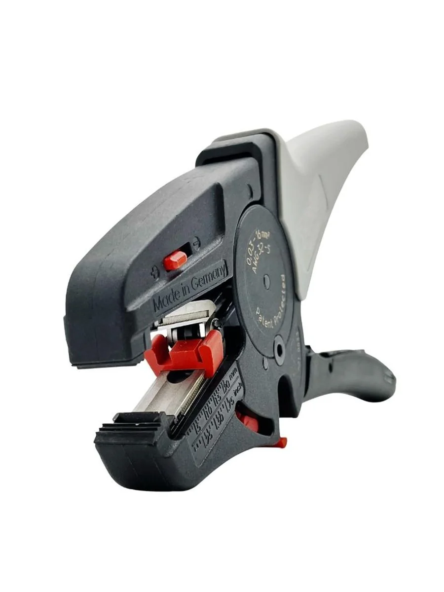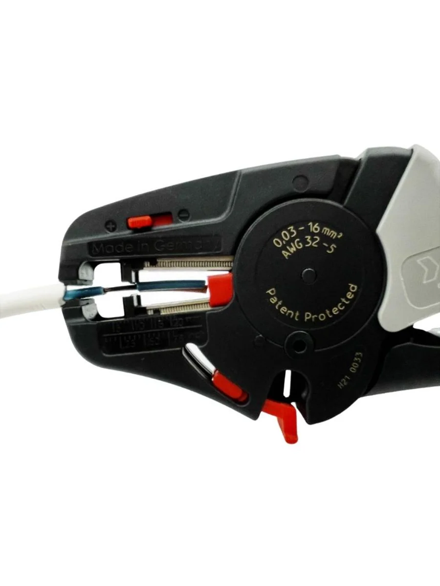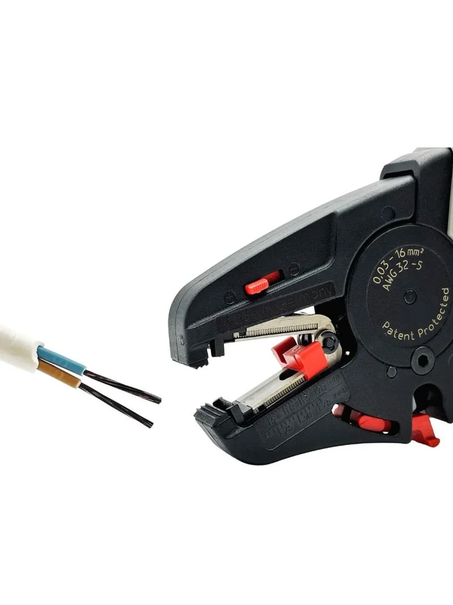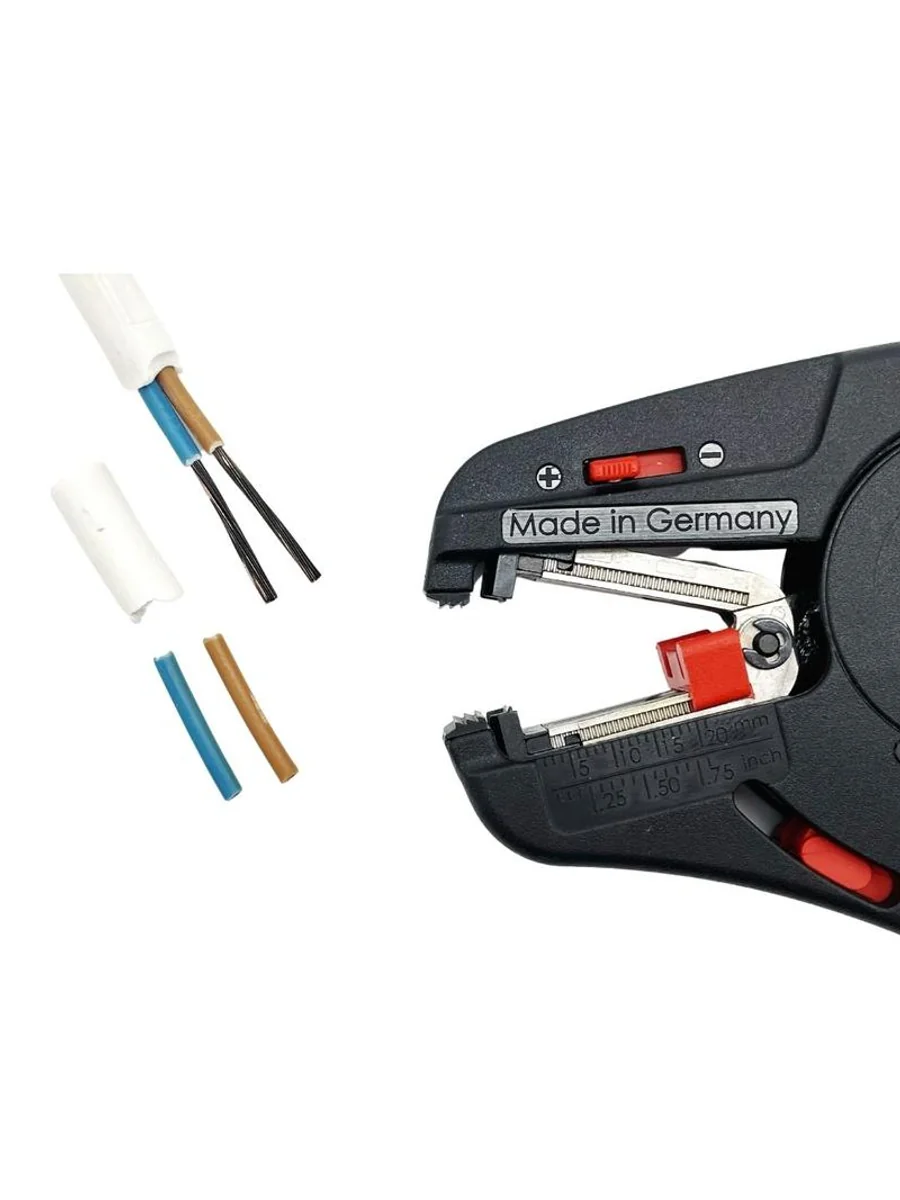 Инструмент для снятия изоляции FELO 58320040 предназначен для снятия защитных оболочек с различных видов круглых и плоских кабелей. Рукоятки и корпус инструмента изготовлены из армированного стекловолокном пластика, обеспечивающего продолжительность эксплуатации. Точный пружинный механизм обеспечивает легкость хода рукояток при работе. Стриппер полностью автоматический и не требует дополнительных настроек при работе. Предусмотрена возможность работы с одножильными и многожильными кабелями с сечением от 0,03 до 16 кв. мм. Инструмент имеет регулировку по длине зачистки кабеля до 20 мм. Так же дополнительный механизм позволяет отрегулировать силу примыкания ножей инструмента при работе с кабелями с мягкой изоляцией. Отрезной нож находится снизу и закрывается предохранительной планкой, что исключает незапланированный контакт с кабелями при работе. Стриппер имеет съёмные ножи, можно использовать ножи круглого и V-образного сечения. Приобретаются, как отдельные позиции.