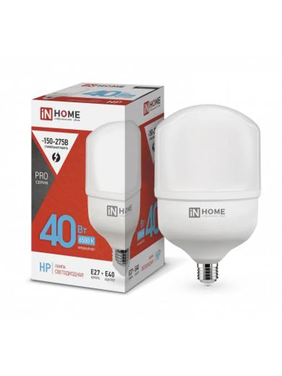 Лампа светодиодная высокомощная LED-HP-PRO 40Вт цилиндр 6500К холод. бел. E27 3800лм 230В с адаптером E40 IN HOME 4690612031101 - купить в KeepBuilding | KeepBuilding