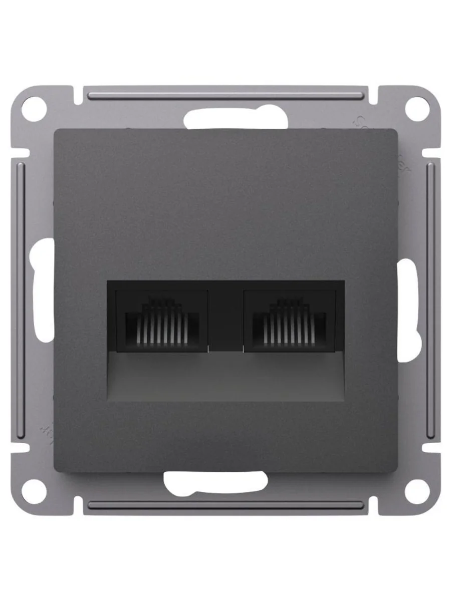 Механизм Systeme Electric (ранее Schneider Electric) серии AtlasDesign в цвете базальт двойной розетки компьютерной с разъёмом RJ45 категория 5е предназначен для удобного и быстрого подключения вашего компьютера к локальной вычислительной сети. Лицевые детали из качественного ABS-пластика, устойчивого к царапинам и УФ-излучению. Усиленные прямые монтажные лапки для лучшей фиксации механизма в монтажной коробке.