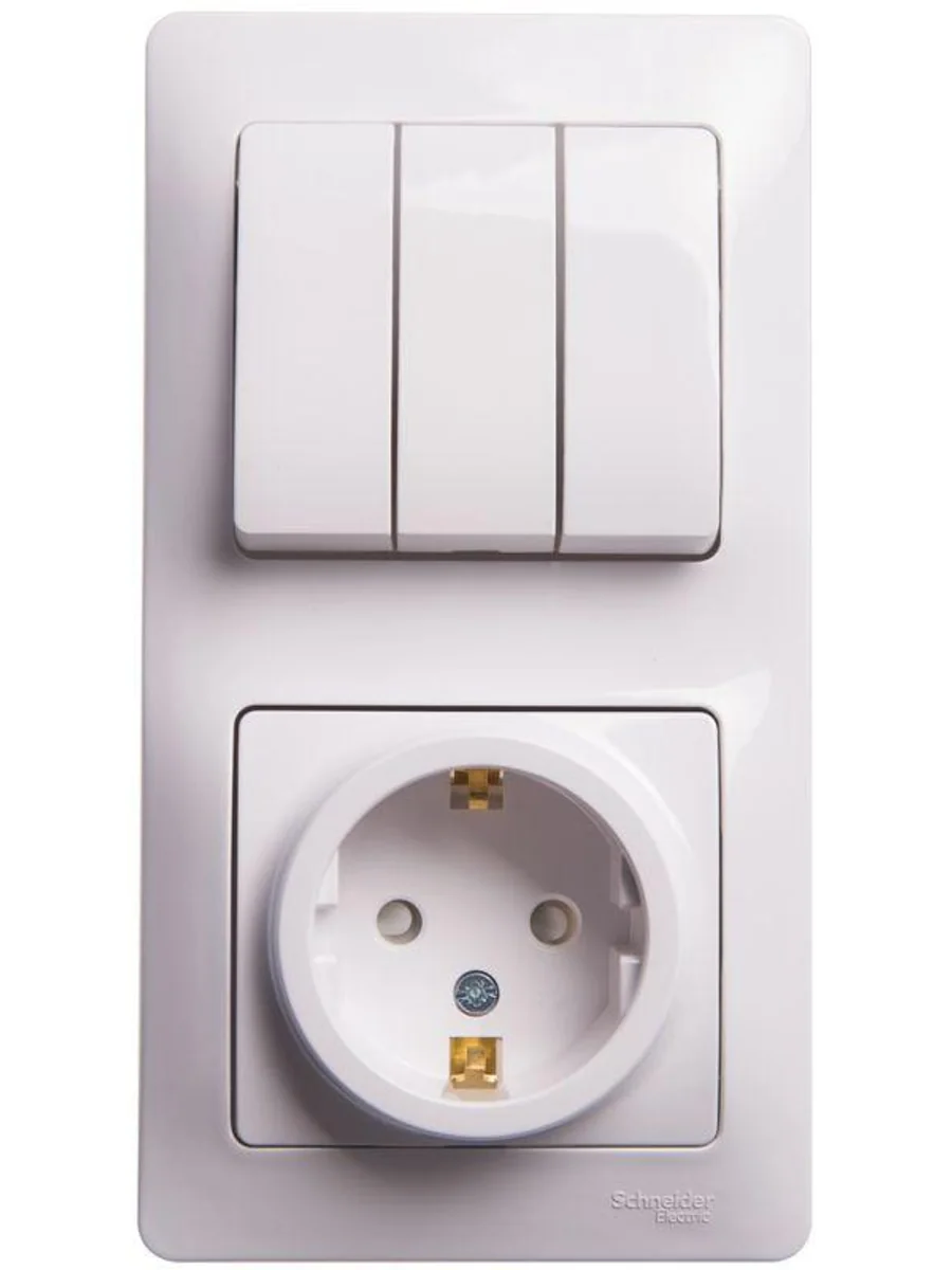Блок комбинированный Systeme Electric (ранее Schneider Electric) серии Glossa (в сборе, цвет белый) предназначен для сетей до 250 В, состоит из розетки с заземлением и шторками на 16 А и 3-клавишного выключателя на 10 А. - Блок удобен в применении и отлично подходит для коридора. - Заземляющий контакт обеспечивает дополнительную защиту от удара электрическим током. При наличии заземления электрический потенциал уходит в землю, защищая человека. - Трёхклавишный выключатель позволяет управлять тремя источниками света из одной точки. - Выполнен из материала PС+ASA, стойкого к УФ-излучению и появлению царапин.