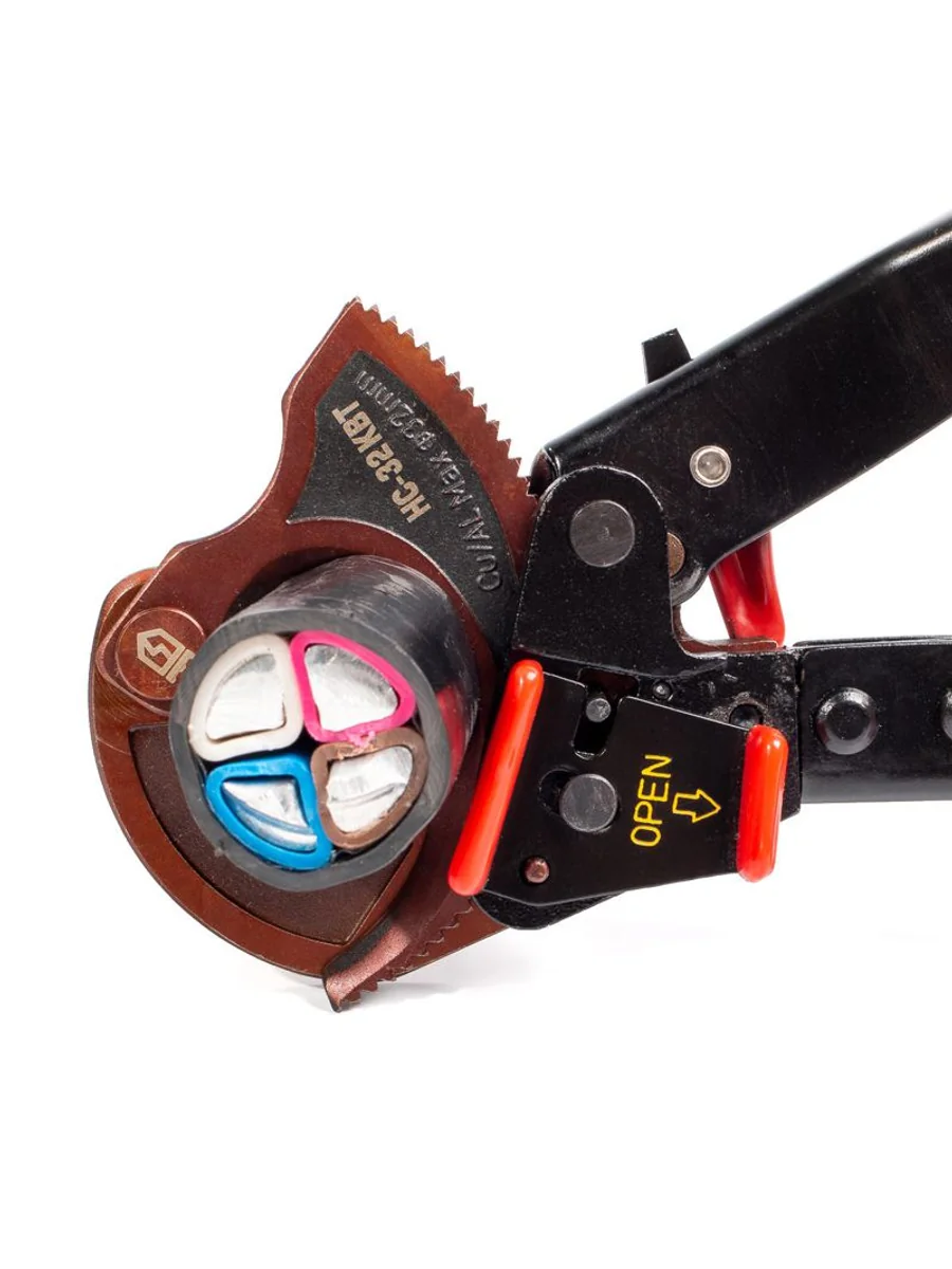 • Диапазон резки: кабели с ленточной броней ? до 32 мм • Специальная термообработка лезвий • Твердость лезвий HRC 48...52 • Усовершенствованная конструкция • Надежный храповой механизм • Возможность работы одной рукой • Функция разблокировки лезвий из любого положения • Блокиратор рукояток • Не предназначены для резки стальных тросов • Вес: 600 г • Длина: 250 мм