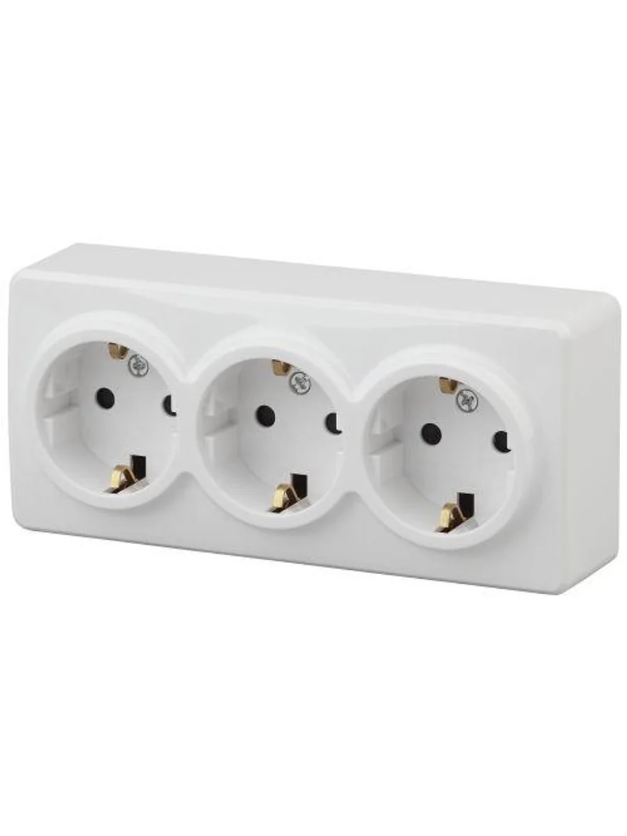 Розетка тройная 3-я серии Эра Эксперт открытой установки цвет белый 11-2208-01. Номинальные характеристики 16А 250В. Устройство выполнено из качественного поликарбоната, оснащёно уникальными винтовыми клеммами ЭКСПЕРТ для максимально качественного зажима кабеля в механизме.