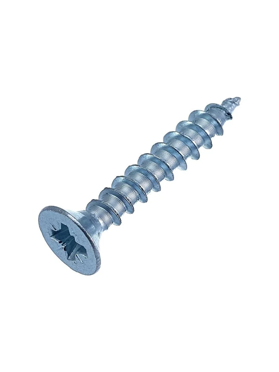 Универсальные саморезы применяются для крепления материалов к дереву, ДСП, пластмассам, металлам небольшой толщины и могут использоваться с пластиковыми дюбелями для установки в бетон или кирпич. Для них характерен средний шаг резьбы, что позволяет работать как с древесиной, так и с металлическими листами. Специальная форма острия и резьбы обеспечивают быстрое, надежное и легкое ввинчивание. Виды универсальных шурупов в зависимости от материала и типа покрытия: • оцинкованные – из углеродистой стали с цинковым покрытием; • желтые саморезы – из углеродистой стали с покрытием желтый цинк. Оцинкованные шурупы защищены от воздействия влаги, поэтому могут применяться как для внутренних, так и для наружных отделочных работ. Шурупы легко проникают в металл толщиной до 0.9 мм, пластики, древесные плиты, оргалит и другие нетвердые материалы. Предварительное сверление отверстий потребуется при толщине листового металла от 0.9 до 6 мм.