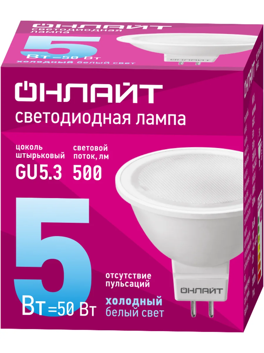 Лампа светодиодная 61 133 OLL-MR16-5-230-6.5K-GU5.3 5Вт ОНЛАЙТ 61133 - купить в KeepBuilding | KeepBuilding