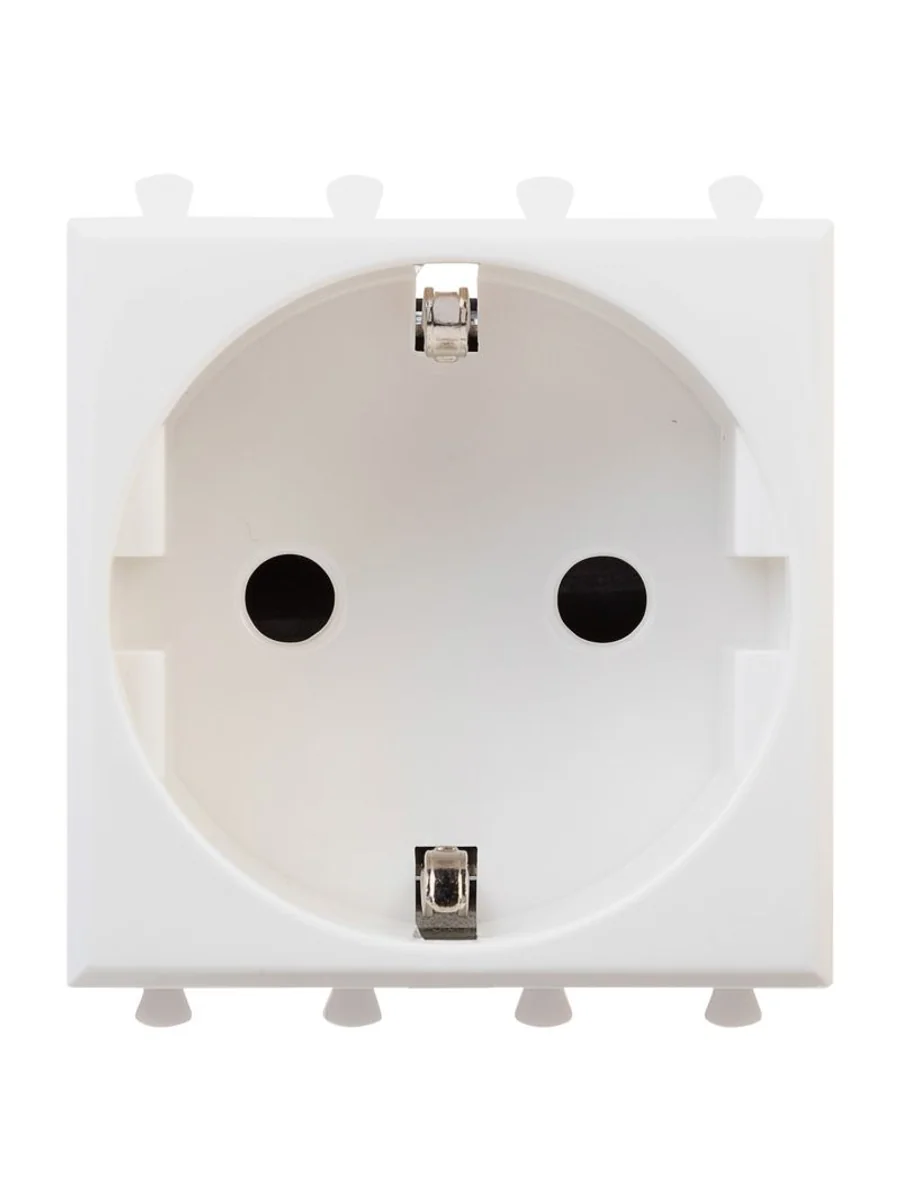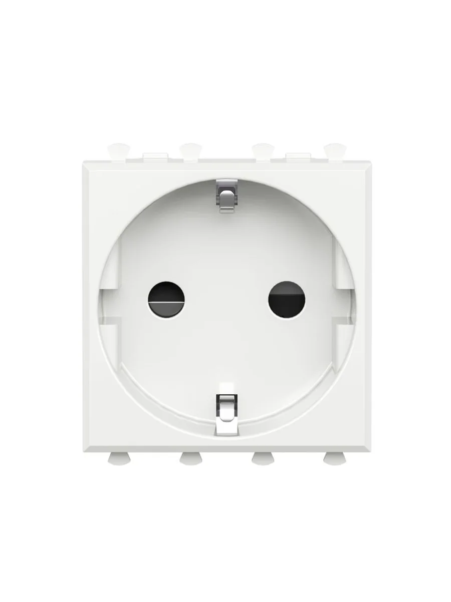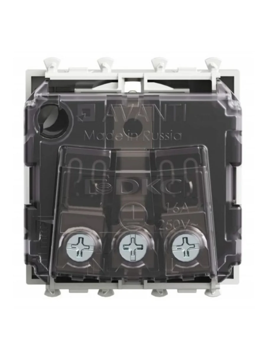 Розетка электрическая с заземлением, со шторками и возможностью установки подсветки, модульная. Предназначена для монтажа в систему пластиковых коробов "In-liner Front" и систему организации рабочих мест "Sotto" при помощи рамок-суппортов и каркасов "Avanti" (код 4400912 и т.д.). Характеристики: диаметр отверстий для ввода кабелей – 3 мм (по 2 отверстия на одну клемму); винтовые зажимы; защитные шторки; шаблон для зачистки кабеля – 11 мм; номинальный ток – 16 A; номинальное напряжение – 230 В; фиксация в подрозеточные коробки глубиной не менее 45 мм при помощи каркаса с лапками (код 4400802) и саморезов. 2 модуля. Цвет: "Белое облако". Производитель оставляет за собой право вносить во внешний вид изделия изменения, которые не влияют на его функционал, безопасность и надежность.