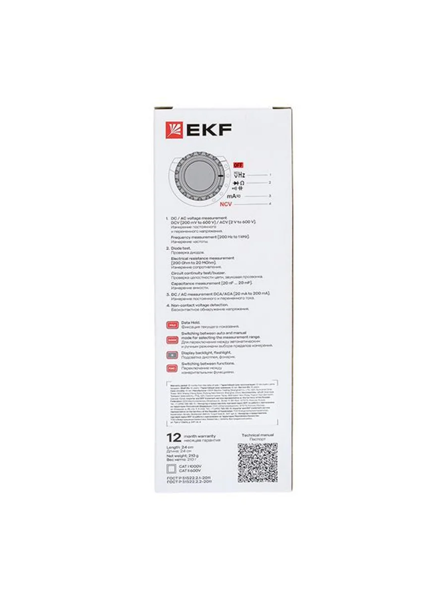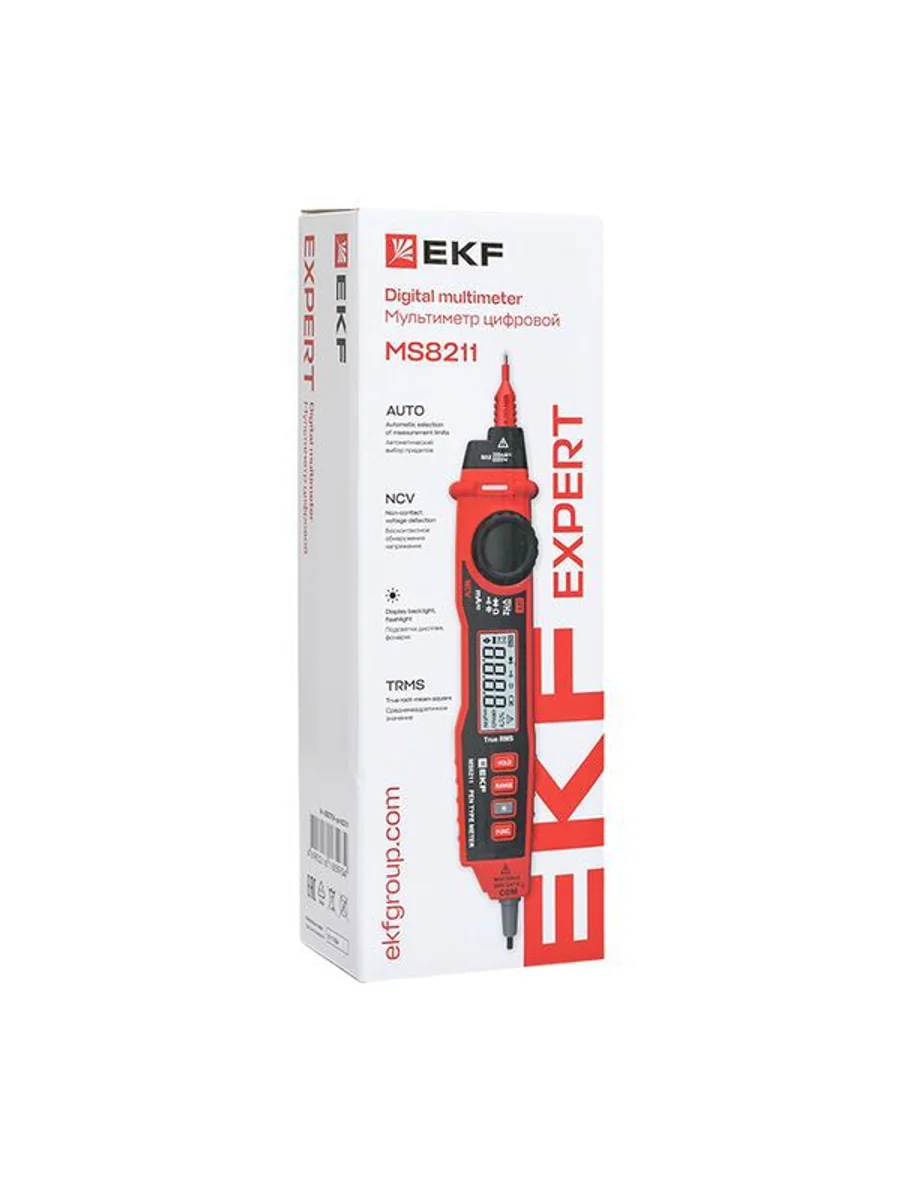 Мультиметр — это универсальный измерительный прибор. В функционал цифрового мультиметра MS8211 EKF Expert входит измерение переменного напряжения до 600В, измерение постоянного напряжения до 600В, измерение постоянного тока 0,2А, измерение электрического сопротивления до 20 МОм, проверка диодов и целостности цепи (звуковая прозвонка), бесконтактное определение напряжения, подсветка дисплея, подсветка рабочей области, автоматическое отключение.