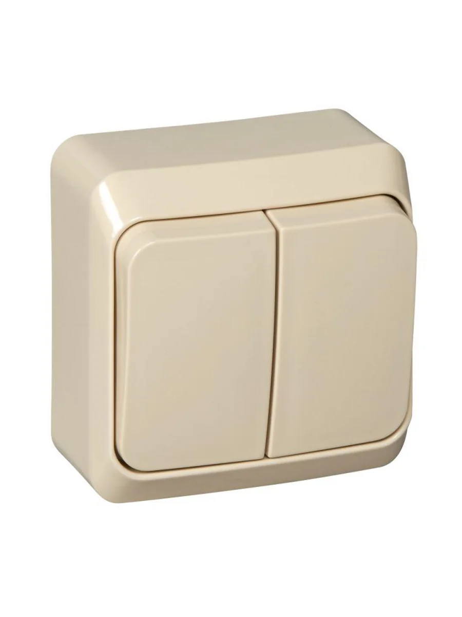 Выключатель Systeme Electric (ранее Schneider Electric) ЭТЮД (кремовый, открытой установки) двухклавишный предназначен для применения в сетях до 250В, на ток до 10А. Две клавиши позволяют управлять двумя источниками света с одной точки. Он прост в установке и удобен применении. Сделано в России.