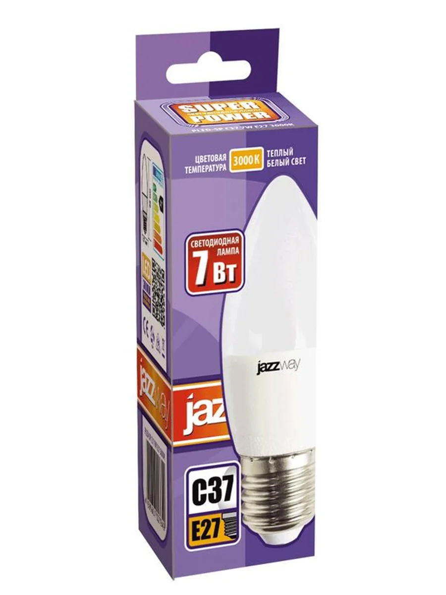 Лампа светодиодная PLED-SP 7Вт C37 свеча 3000К тепл. бел. E27 530лм 230В JazzWay 1027825-2 - купить в KeepBuilding | KeepBuilding