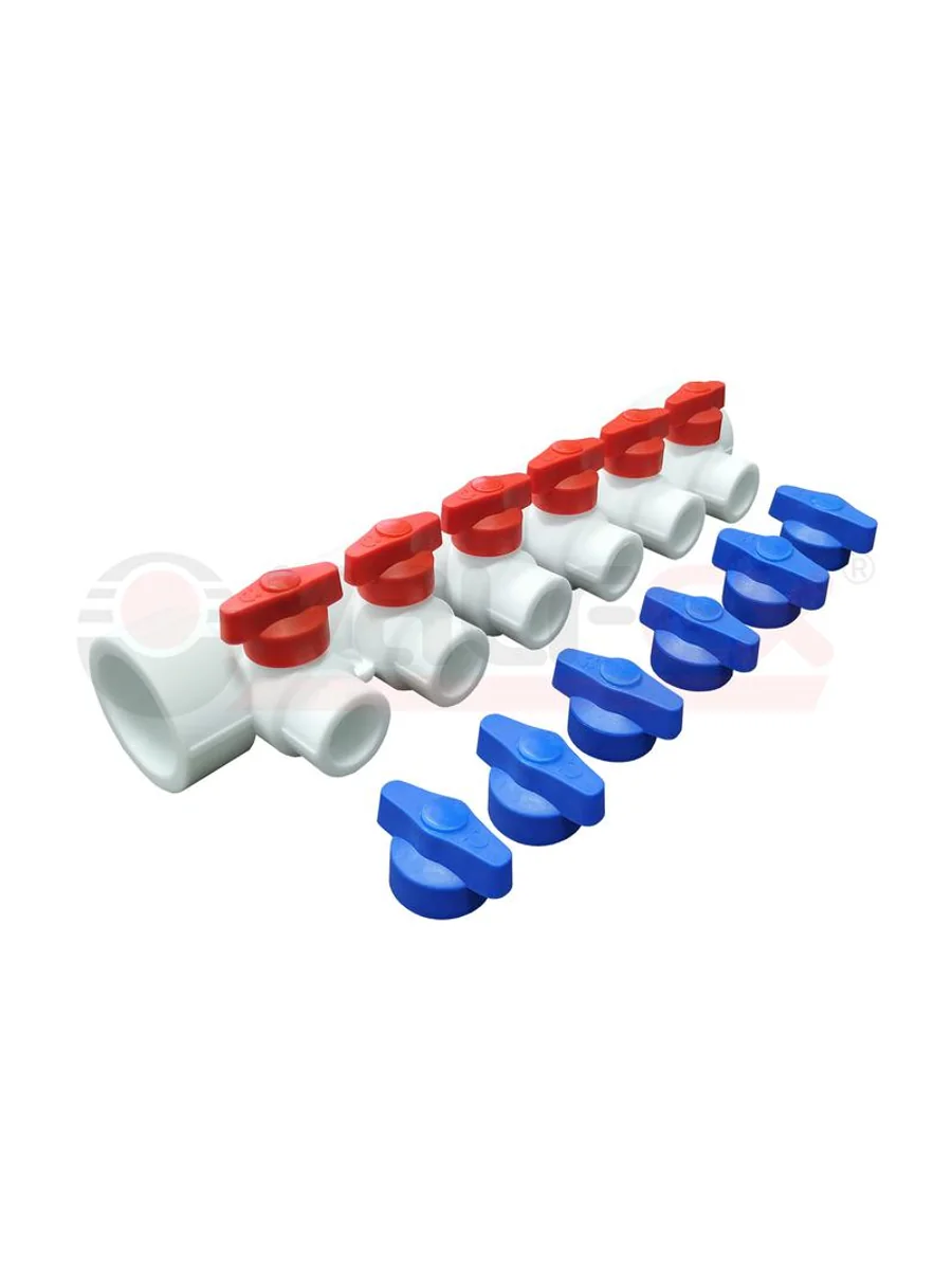 Коллектор универсальный с отсечными кранами 40х20 на 3 выхода (10/1) бел. VALFEX 101134003