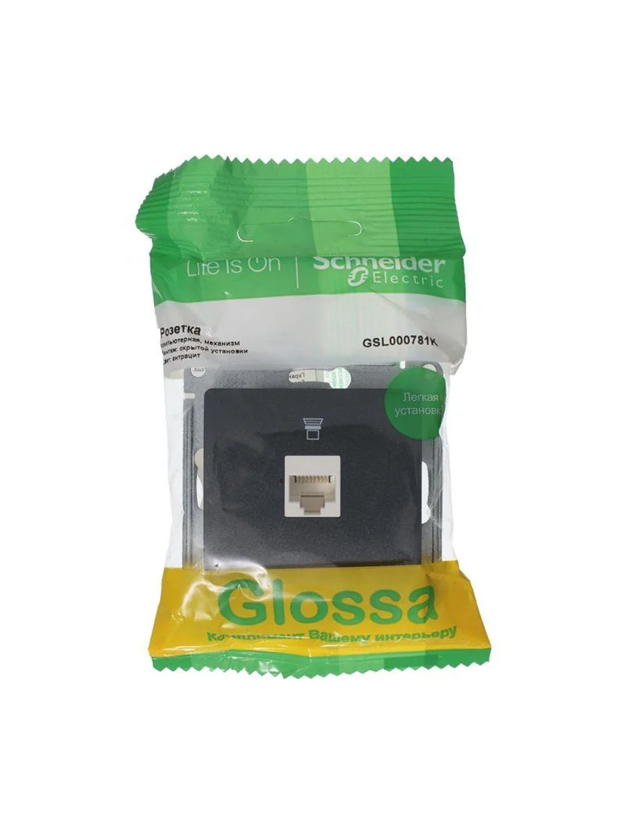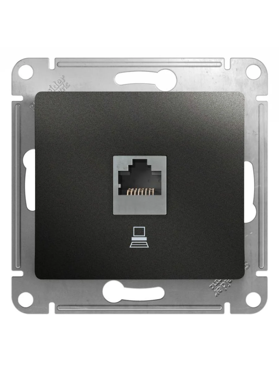 Механизм Systeme Electric серии Glossa (цвет антрацит) розетки компьютерной с разъёмом RJ45 категория 5е предназначен для удобного и быстрого подключения вашего компьютера к компьютерной сети. - Выполнен из материала PС+ASA, стойкого к УФ-излучению и появлению царапин (ранее Schneider Electric MGU5.2020.12ZD, NU541154).