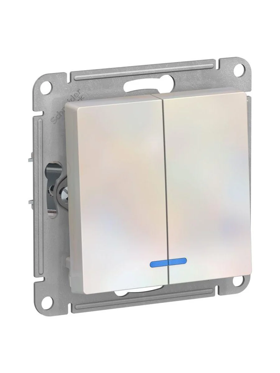 Механизм Systeme Electric (ранее Schneider Electric) серии AtlasDesign в цвете жемчуг выключателя 2-клавишного c подсветкой подходит для сетей 250 В, на ток 10 А. Благодаря светодиодной подсветке синего цвета изделие легко найти в темноте. Двухклавишный выключатель позволяет управлять двумя источниками света с одной точки. Лицевые детали из качественного ABS-пластика, устойчивого к царапинам и УФ-излучению. Усиленные прямые монтажные лапки для лучшей фиксации механизма в монтажной коробке.