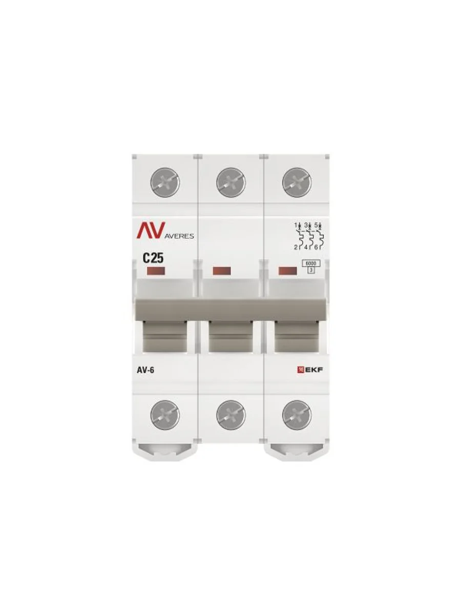 Выключатель автоматический модульный 3п C 25А 6кА AV-6 AVERES EKF mcb6-3-25C-av - купить в KeepBuilding | KeepBuilding