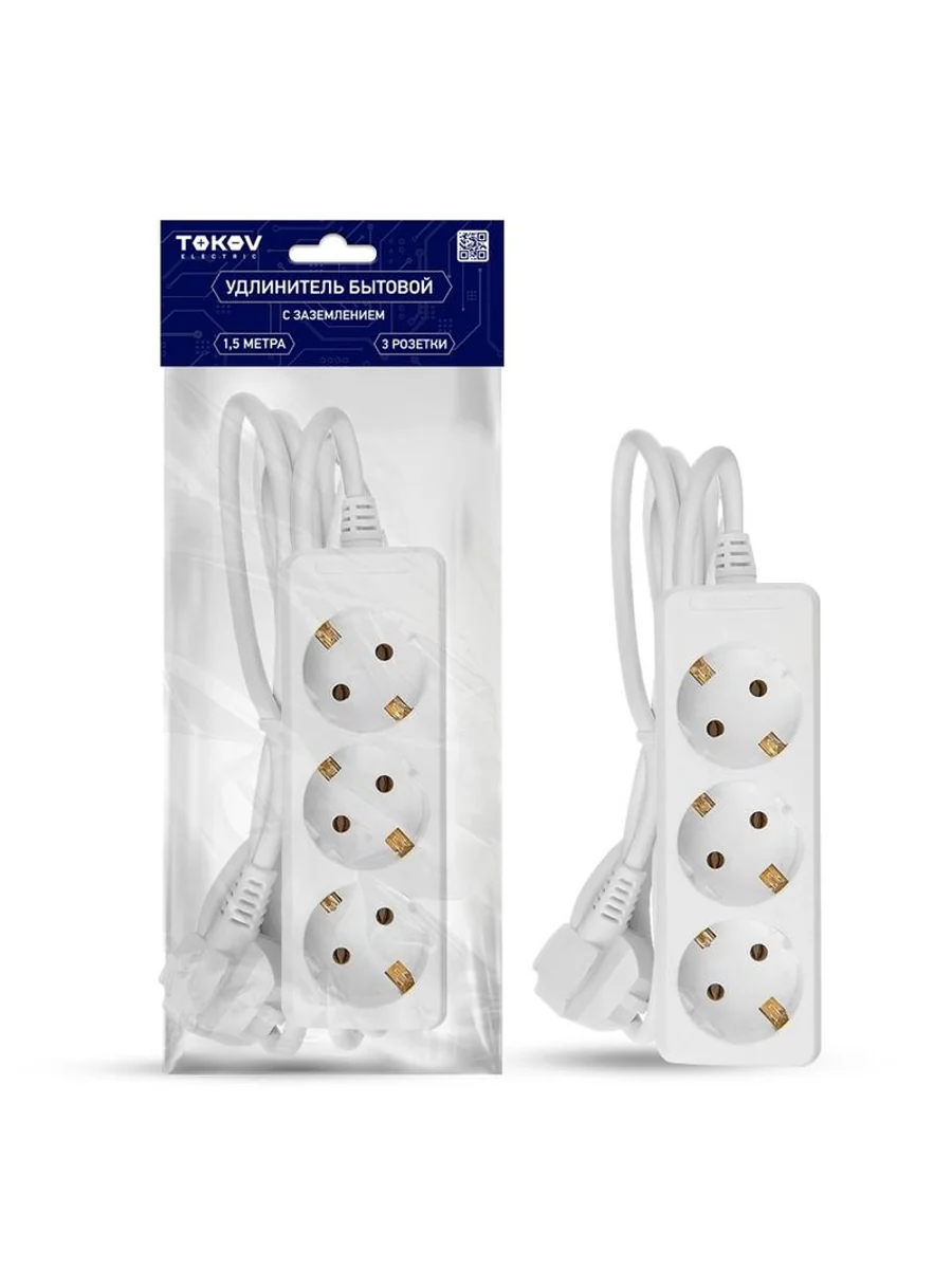Удлинитель 3х1.5м с заземл. 10А 3х0.75 TOKOV ELECTRIC TKE-C01-BU3-1.5-075-Z - купить в KeepBuilding | KeepBuilding