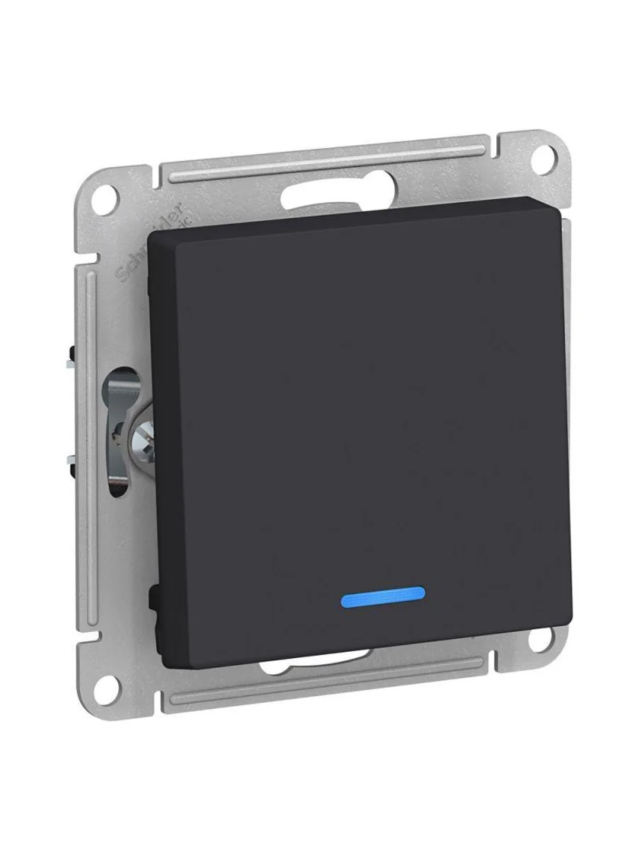 Механизм выключателя 1-клавишного с подсветкой Systeme Electric (ранее Schneider Electric) серии AtlasDesign в цвете карбон подходит для сетей 250 В, на ток 10 А. Благодаря светодиодной подсветке синего цвета изделие легко найти в темноте. Лицевые детали из качественного ABS-пластика, устойчивого к царапинам и УФ-излучению. Благодаря покрытию «soft touch» к изделию приятно прикасаться.