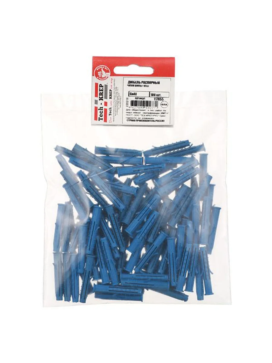 Дюбель TCHAPPAI (Чапай) имеет плоский цилиндрический бортик и 4-х сегментную распорную зону, на которой присутствуют специальные элементы – шипы и усы. Продольные ребра жесткости на шейке дюбеля, шипы и усы на распорной зоне обеспечивают надежную фиксацию дюбеля в материале основания, предотвращают проворачивание при установке. Изготовлен из полипропилена синего цвета. Дюбель универсален, применяется для крепления изделий к основаниям из всех типов строительных материалов: полнотелый кирпич, пустотелый керамический кирпич, полнотелый бетон, керамзитобетон, листовые материалы. При монтаже в пустотелых материалах шуруп вязнет в свободном конце дюбеля и скручивает его в узел. Используется совместно с универсальными шурупами, сантехническими болтами, шпилькой-шурупом и т.д. Устанавливается в предварительно просверленное отверстие. Не рекомендуется применять с черными саморезами.