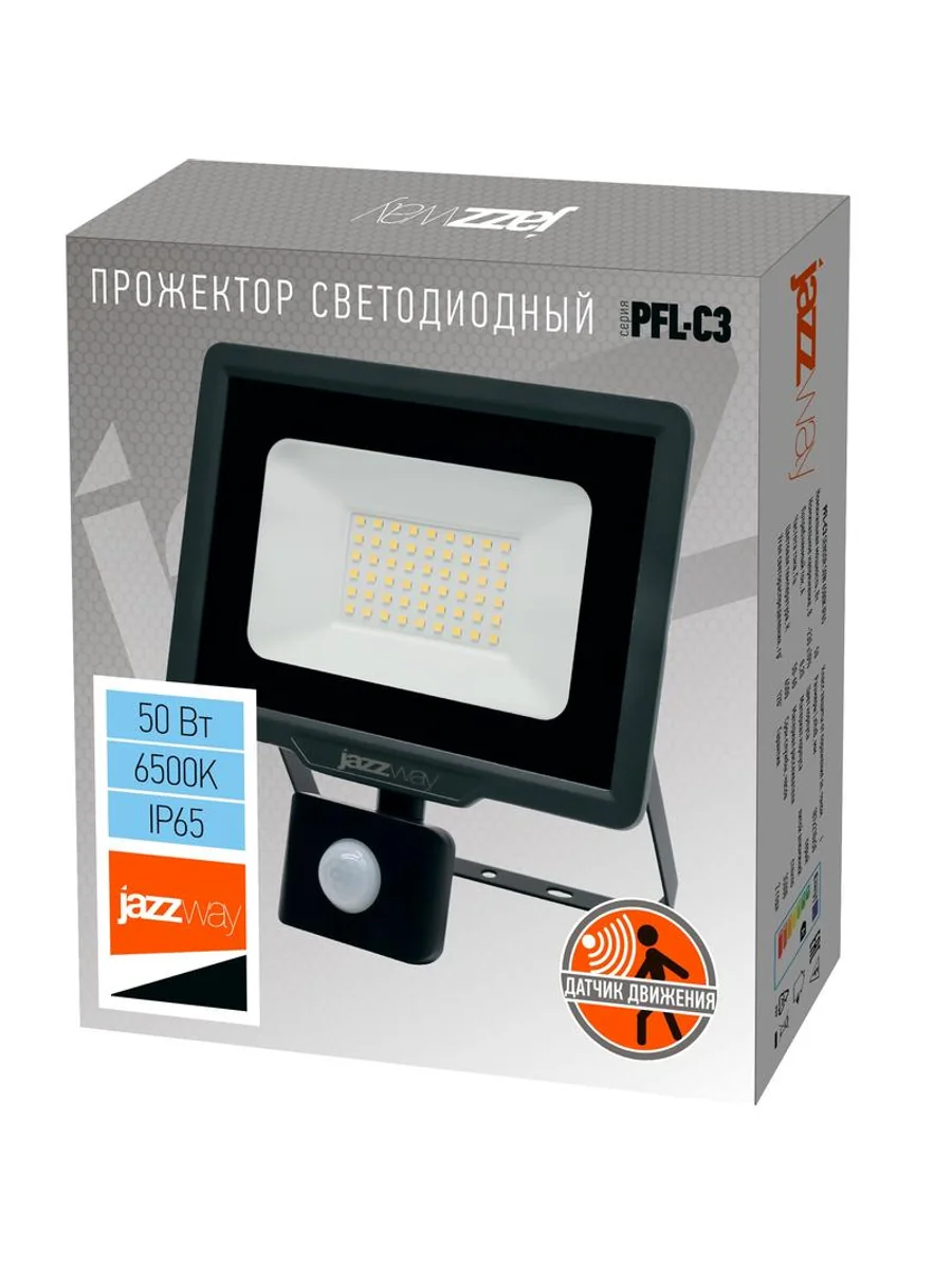 Прожектор светодиодный PFL-C3 SENSOR 50Вт 6500К IP65 ДО закален. прозр. стекло датчик движения инфракрасный Pro JazzWay 5026940A - купить в KeepBuilding | KeepBuilding