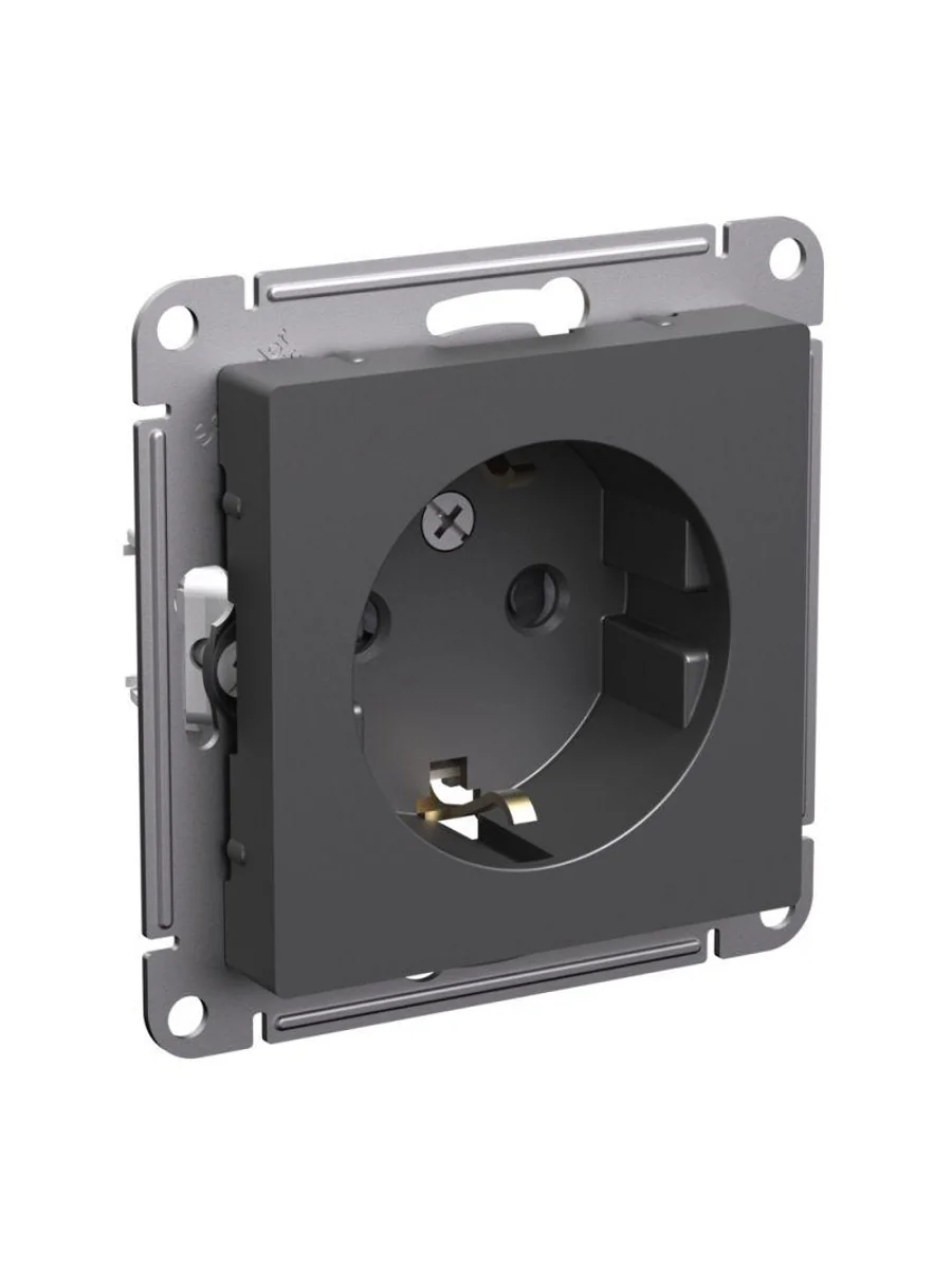 Механизм Systeme Electric (ранее Schneider Electric) серии AtlasDesign в цвете базальт розетки одинарной с заземлением и шторками подходит для сетей 250 В, на ток 16 А. Заземляющий контакт обеспечивает дополнительную защиту от удара электрическим током. При наличии заземления электрический потенциал уходит в землю, защищая человека. Лицевые детали из качественного ABS-пластика, устойчивого к царапинам и УФ-излучению. Усиленные прямые монтажные лапки для лучшей фиксации механизма в монтажной коробке.