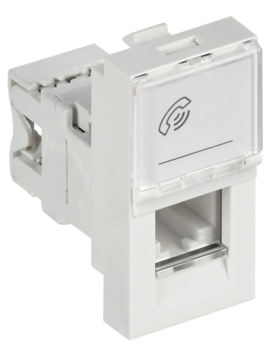 Модульные электроустановочные изделия 45х45 серии ПРАЙМЕР предназначены для организации рабочего места с применением кабель-каналов, напольных лючков или розеточных блоков, а также для открытого монтажа в коробки типа КМКУ. Розетка телефонная RJ-11 предназначена для подключения устройств абонентской телефонной техники, устанавливаемых в жилых, общественных и промышленных помещениях, к линиям телефонной сети. Розетка на 1 вход. Комплектуются одним модулем Keystone Jack категории 3 IDC. Размеры, ВхШхГ,мм: 45х22,5х41,7. Цвет - белый. Размеры модульных ЭУИ ПРАЙМЕР: 1 модуль = 45х22,5 мм 2 модуля (1 пост) = 45х45 мм