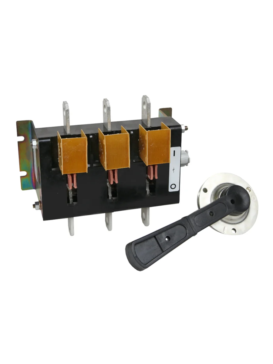 Выключатель-разъединитель 3 полюсный на номинальный ток 400 А, в котором установлена съемная рукоятка.