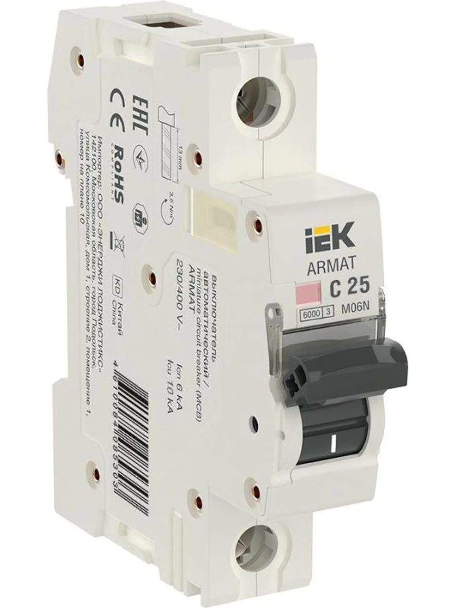 Выключатель автоматический модульный 1п C 25А M06N ARMAT IEK AR-M06N-1-C025 - купить в KeepBuilding | KeepBuilding