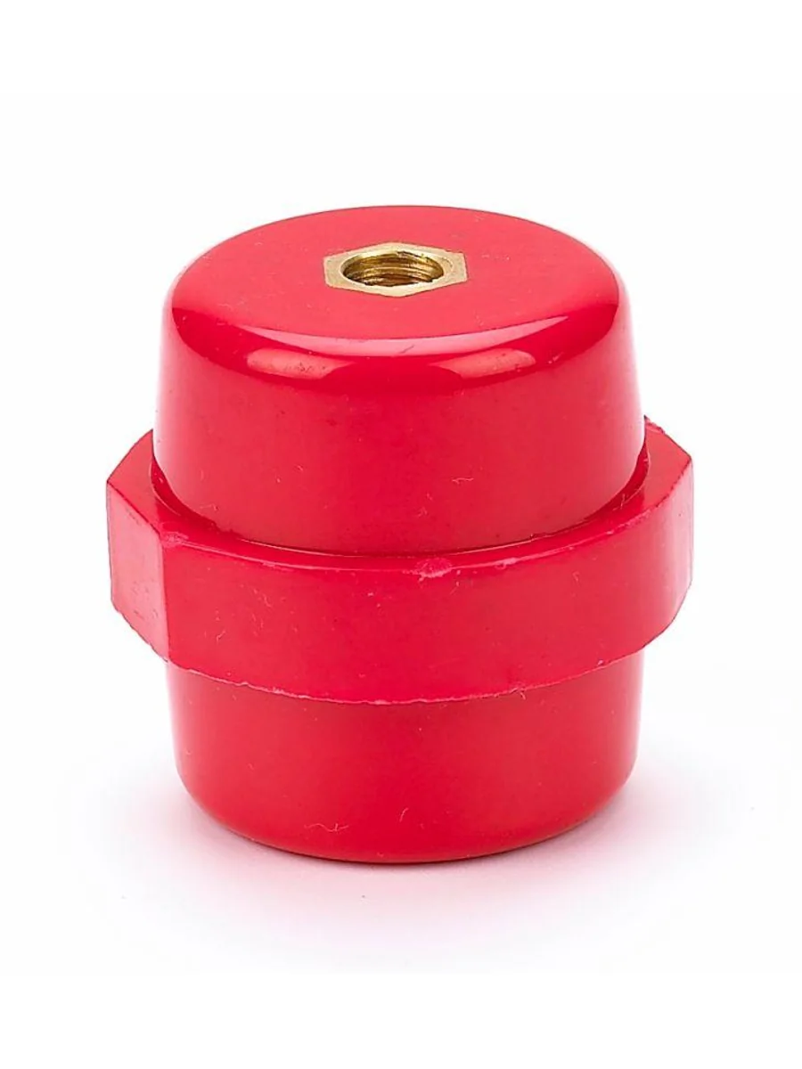 Изолятор шинный опорный серии ИО-101 Dekraft; максимальный рабочий ток 475 А; напряжение пробоя – 12 кВ; механическая сила на изгиб - до 10 кН; материал корпуса - композитное стекловолокно; материал резьбовых втулок – латунь; диаметр внутренней резьбы – М8; кол-во в упаковке – 10 шт. Изоляторы применяются для крепления токоведущих шин внутри шкафов и для фиксации и изоляции токоведущих частей от корпуса и панелей с последующим подключением силовых проводников для распределения электроэнергии.