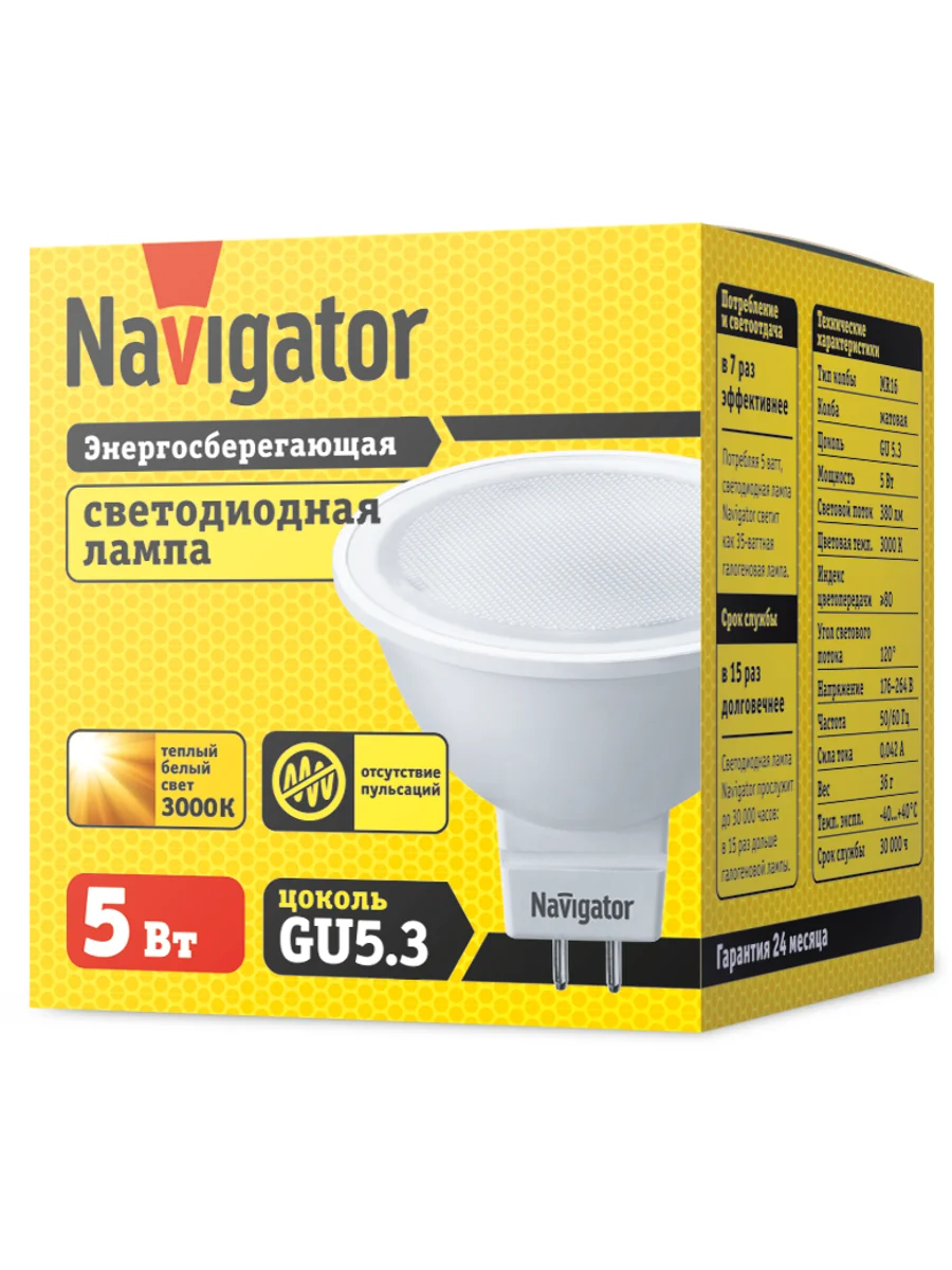 Лампа светодиодная 94 263 NLL-MR16-5-230-3K-GU5.3 5Вт 3000К тепл. бел. GU5.3 360лм 220-240В Navigator 94263 - купить в KeepBuilding | KeepBuilding