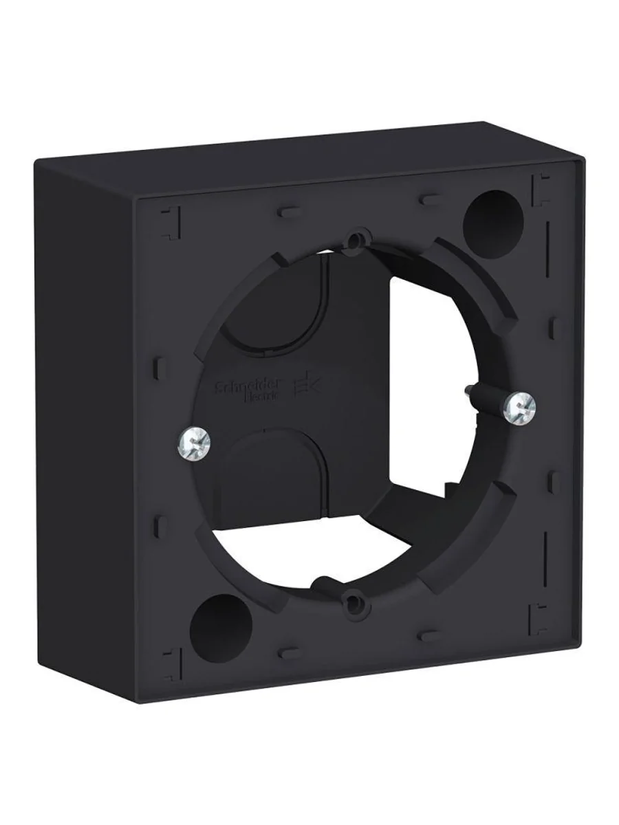 Коробка Systeme Electric (ранее Schneider Electric) серии AtlasDesign в цвете карбон наружного монтажа. Позволяет установить любую функцию скрытого монтажа на стену (как изделие открытого монтажа). Благодаря специальным соединителям, входящим в комплект изделия, несколько коробок можно соединить между собой. Лицевые детали из качественного ABS-пластика, устойчивого к царапинам и УФ-излучению. Благодаря покрытию «soft touch» к изделию приятно прикасаться.