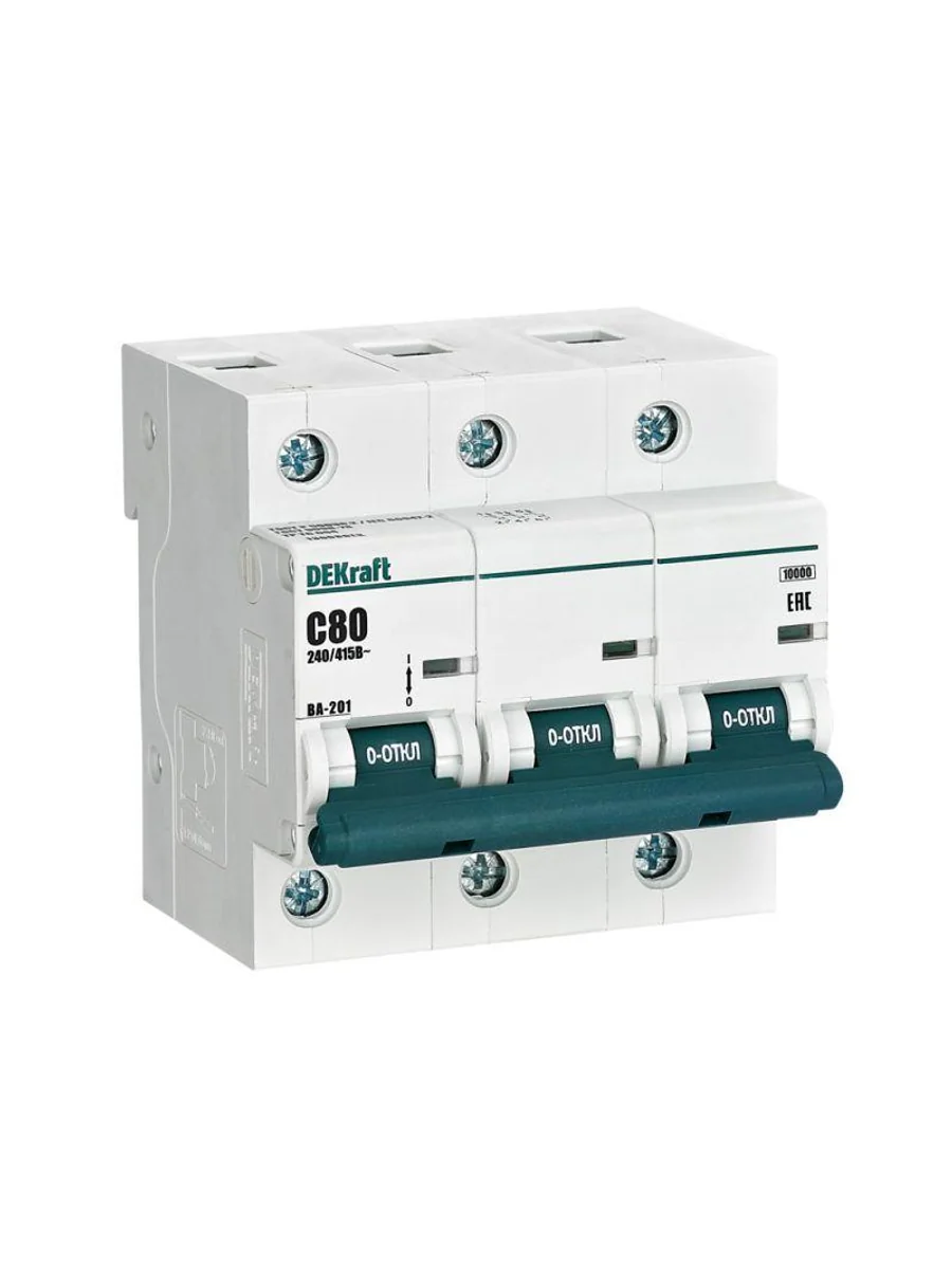 Автоматический выключатель серии ВА-201 Dekraft; 3P; номинальный ток 80 А; характеристика С; отключающая способность 10 кА; ширина модуля 27мм. Монолитная лицевая панель обеспечивает безопасную эксплуатацию аппарата. Окошко-индикатор всегда показывает состояние аппарата вне зависимости от положения рукоятки управления. Двухпозиционная защелка облегчает монтаж выключателя. Аппарат на 100% совместим с корпусами и оболочками Dekraft, Systeme Electric.