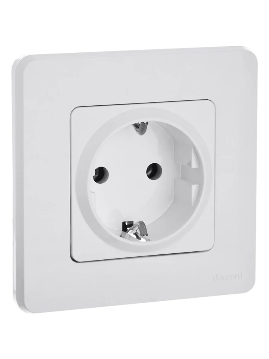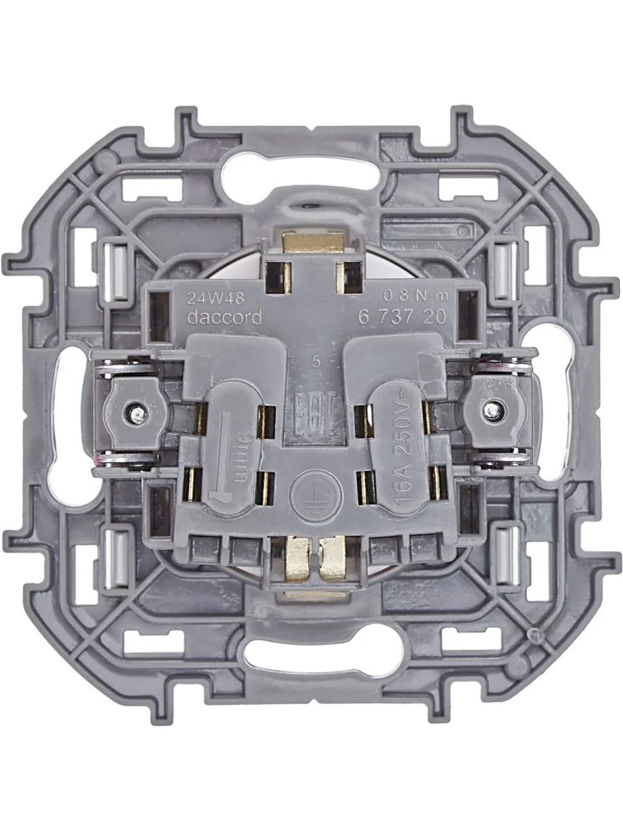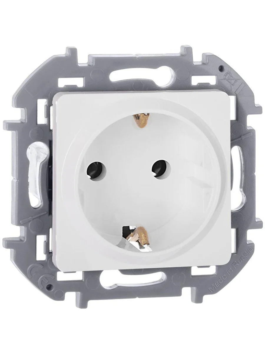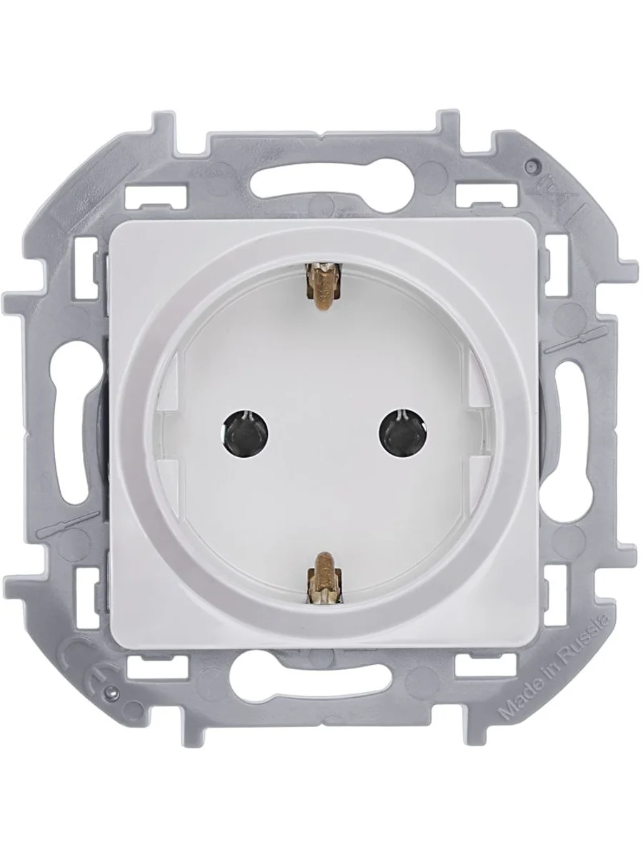 Розетка с заземлением для скрытого монтажа Inspiria, цвет "Белый", максимальный ток 16А, напряжение ~250В, максимальная мощность 3680Вт, винтовые зажимы. Применяется для присоединения однофазных электрических потребителей к сети переменного тока в зданиях с проводкой с заземлением (с защитным проводником).