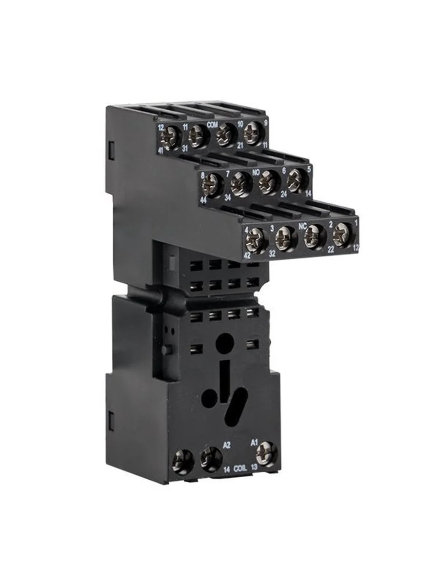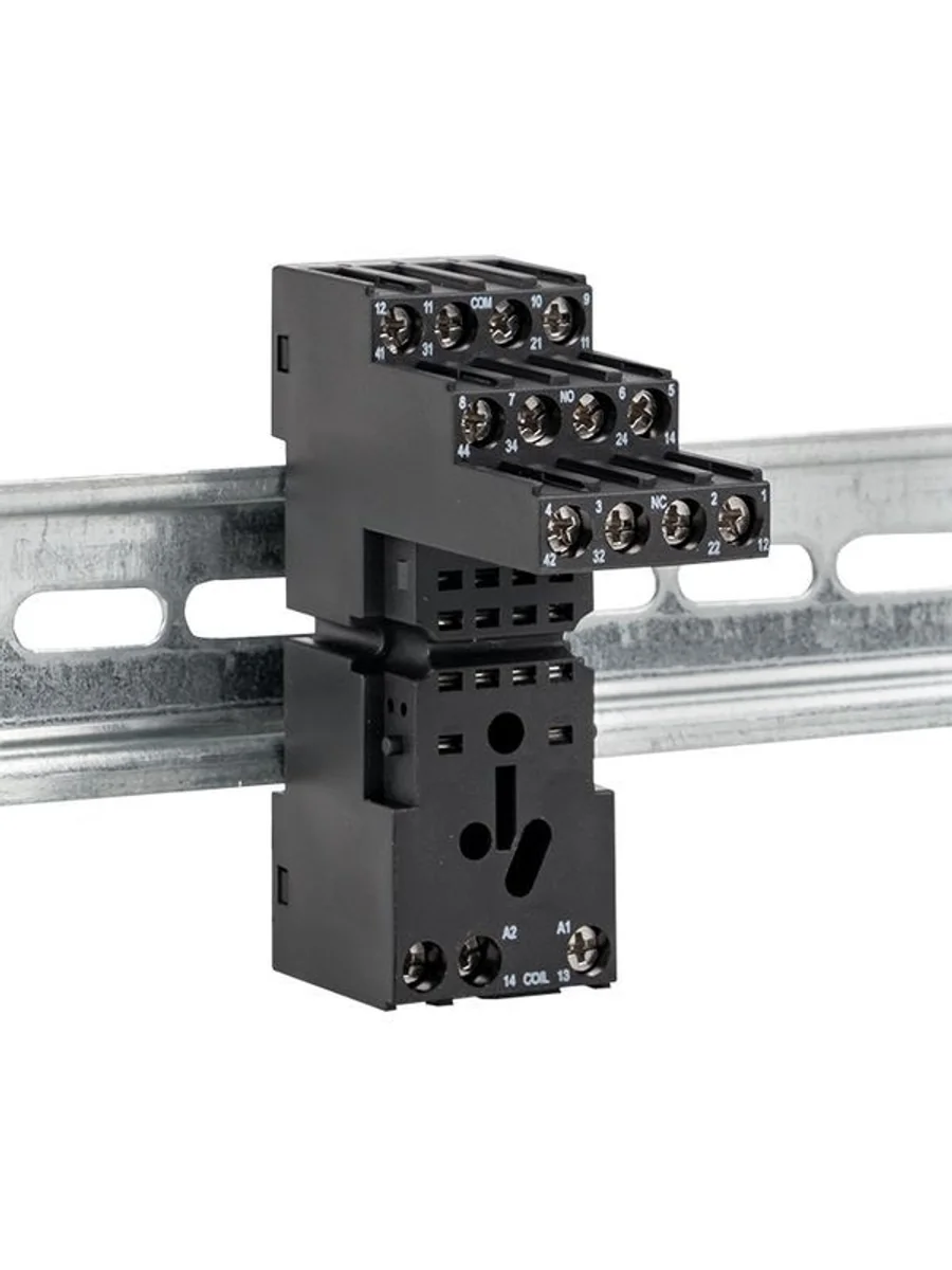 Разъемы модульные серии РМ4/РМ5 предназначаются для крепления реле промежуточных на 35-мм монтажной DIN-рейке. На модульном разъеме располагаются зажимы выводов переключающих контактов и катушки. Разъемы Push-in оснащены зажимными клеммами, в остальных разъемах используются винтовые клеммы.