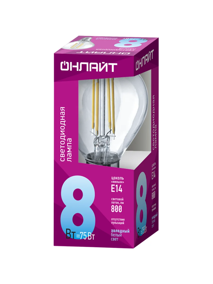 Лампа светодиодная филаментная 80 887 OLL-F-G45-08-230-4K-E14 8Вт шар прозрачная 4000К нейтр. бел. E14 800лм 220-240В ОНЛАЙТ 80887 - купить в KeepBuilding | KeepBuilding