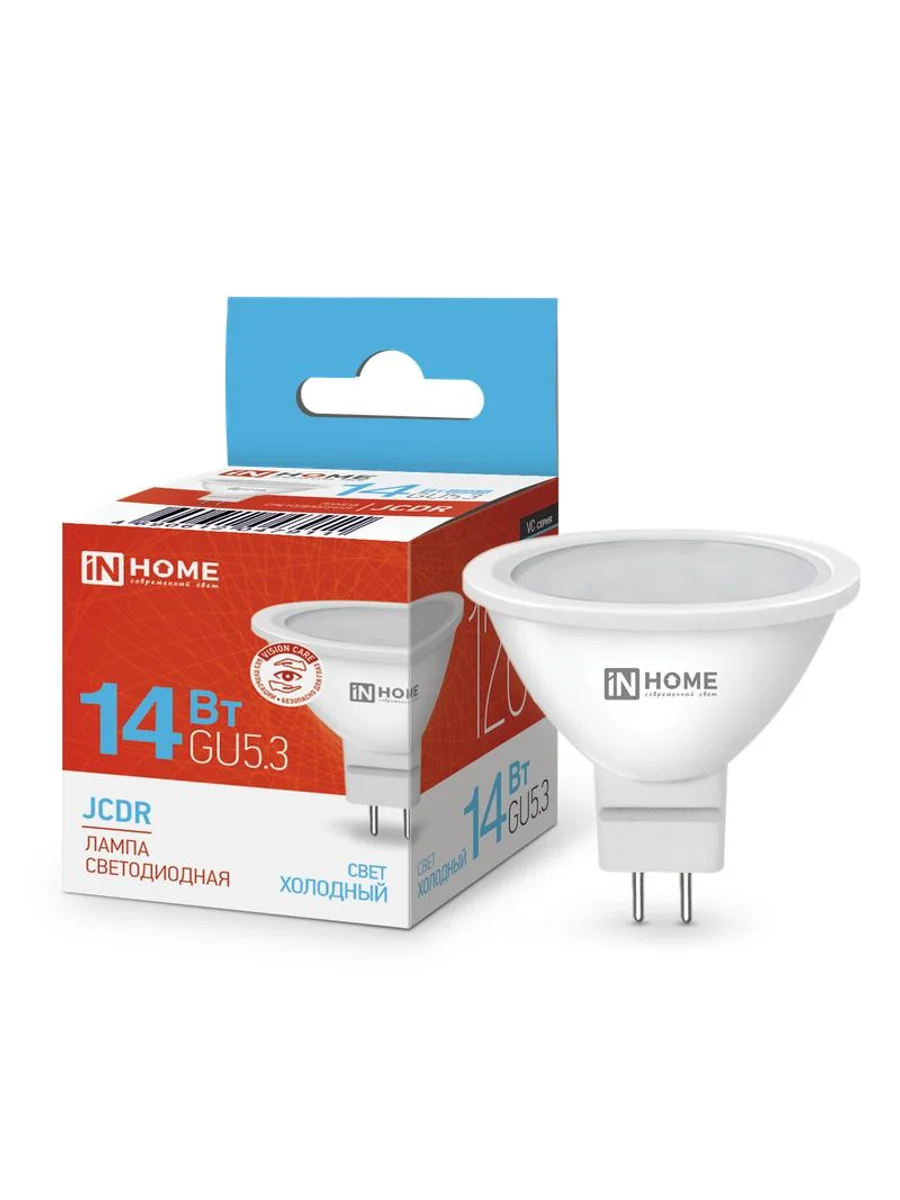 Лампа светодиодная LED-JCDR-VC 14Вт GU5.3 6500К 1260лм IN HOME 4690612047911 - купить в KeepBuilding | KeepBuilding