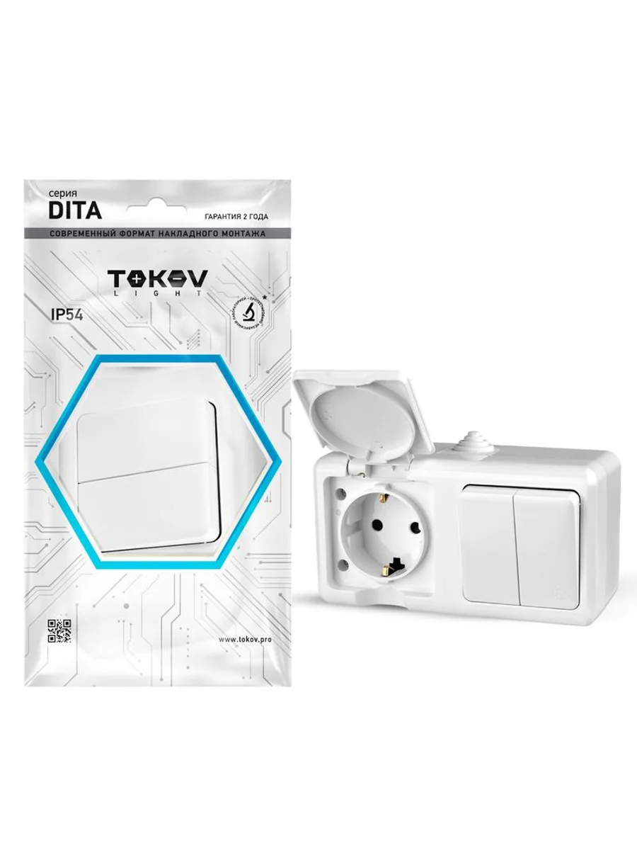 Блок ОП Dita (розетка 16А 250В с заземл. + 2-кл. выкл. 10А) IP54 бел. TOKOV ELECTRIC TKL-DT-V2RZ-C01-IP54 - купить в KeepBuilding | KeepBuilding
