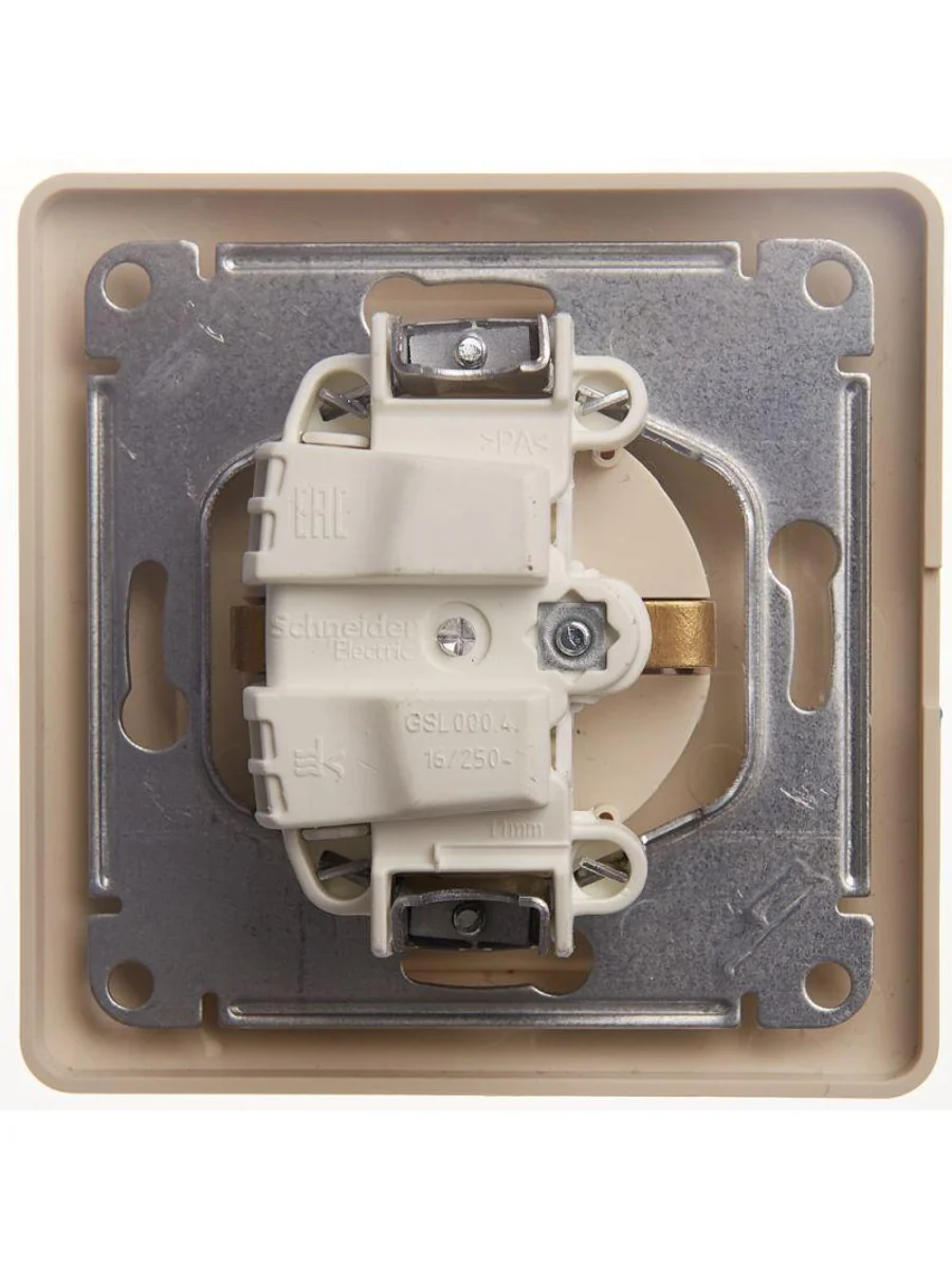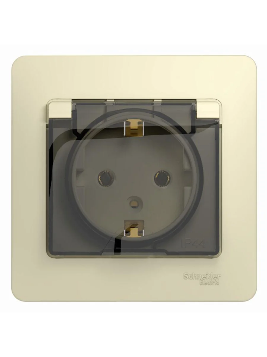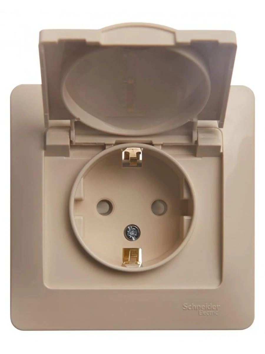 Розетка Systeme Electric (ранее Schneider Electric) серии Glossa (в сборе, цвет бежевый) одинарная с заземлением, шторками и крышкой подходит для сетей 250 В, на ток 16 А. - Заземляющий контакт обеспечивает дополнительную защиту от удара электрическим током. При наличии заземления электрический потенциал уходит в землю, защищая человека. - Выполнен из материала PС+ASA, стойкого к УФ-излучению и появлению царапин. - Эргономичные клеммы розеток расположены в один ряд.