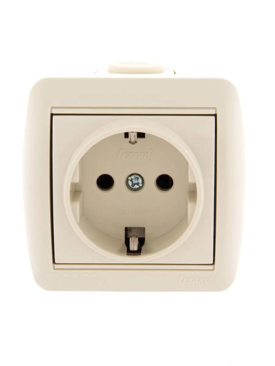 Розетка 1-м ОП Ната керам. с заземл. крем. Lezard 710-0300-122 представляет собой электроустановочный механизм одноместной розетки со стороной, равной 90 мм, кремового цвета. Корпус изготовлен из негорючего пластика, устойчивого к воздействию ультрафиолетовых лучей, поэтому фасадная панель сохраняет свой первоначальный цвет более продолжительное время и не желтеет в процессе эксплуатации), более устойчив к механическим повреждениям (царапинам и проч.), высокой температуре, не плавится и не чернеет. Основание керамическое. Монтируется на глубину 50 мм, на поверхность стены.