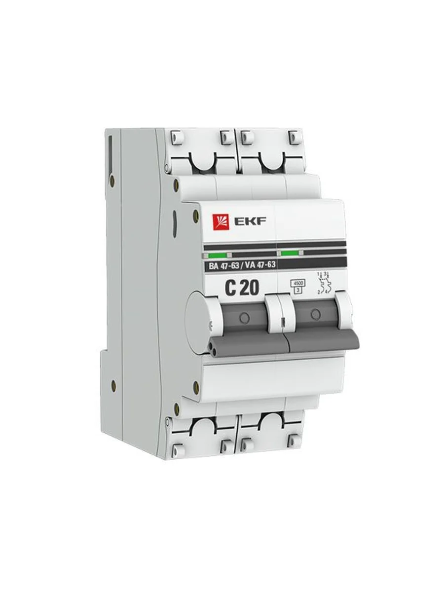 Выключатель автоматический модульный 2п C 20А 4.5кА ВА 47-63 PROxima EKF mcb4763-2-20C-pro - купить в KeepBuilding | KeepBuilding