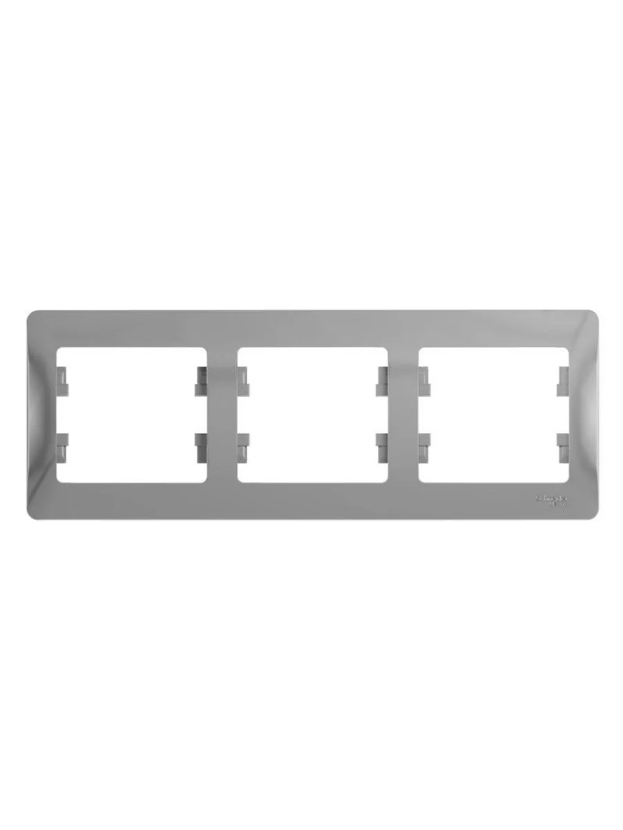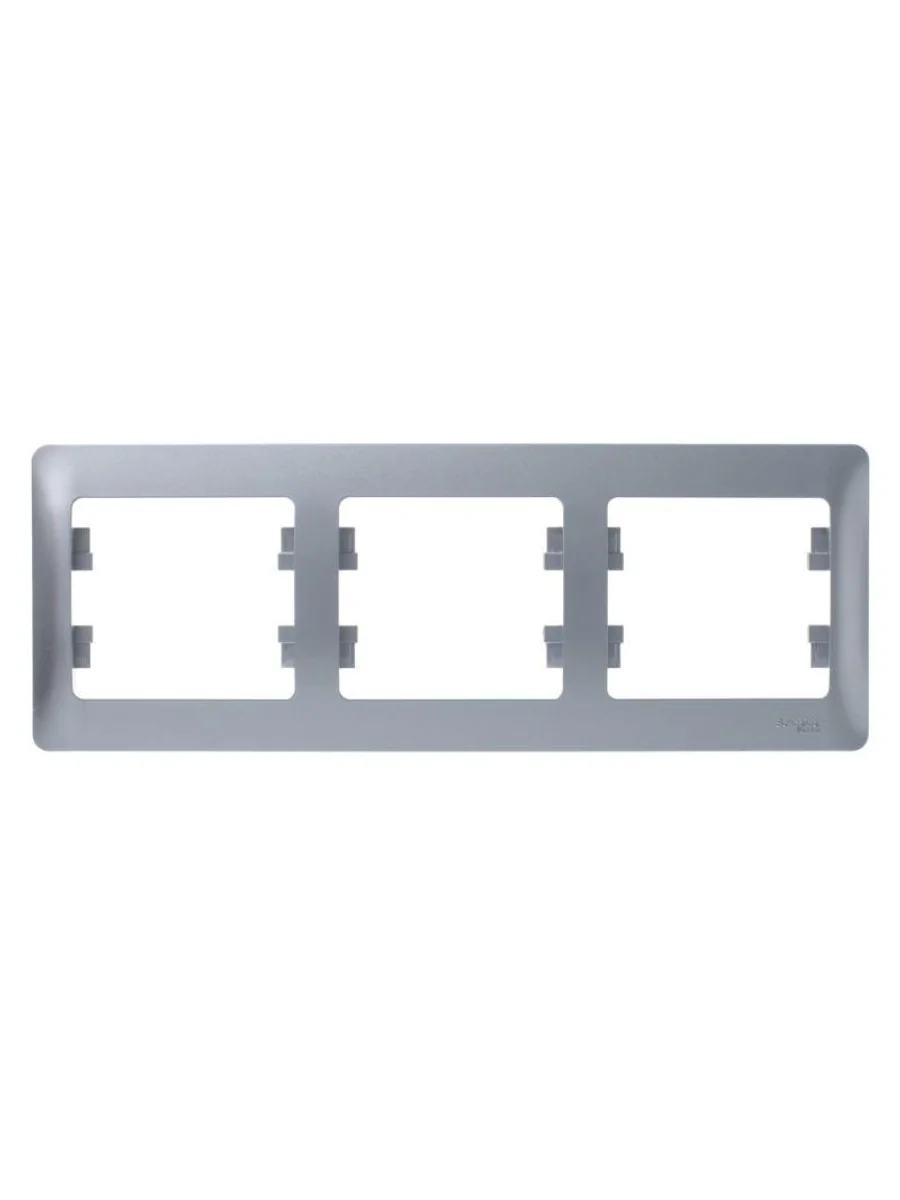 Рамка Systeme Electric серии Glossa (цвет алюминий) трёхместная. - Устанавливается в вертикальном положении. - Выполнена из материала PС+ASA, стойкого к УФ-излучению и появлению царапин. - Позволяет гармонично вписать электроустановочное изделие в интерьер помещения (ранее Schneider Electric NU200630).