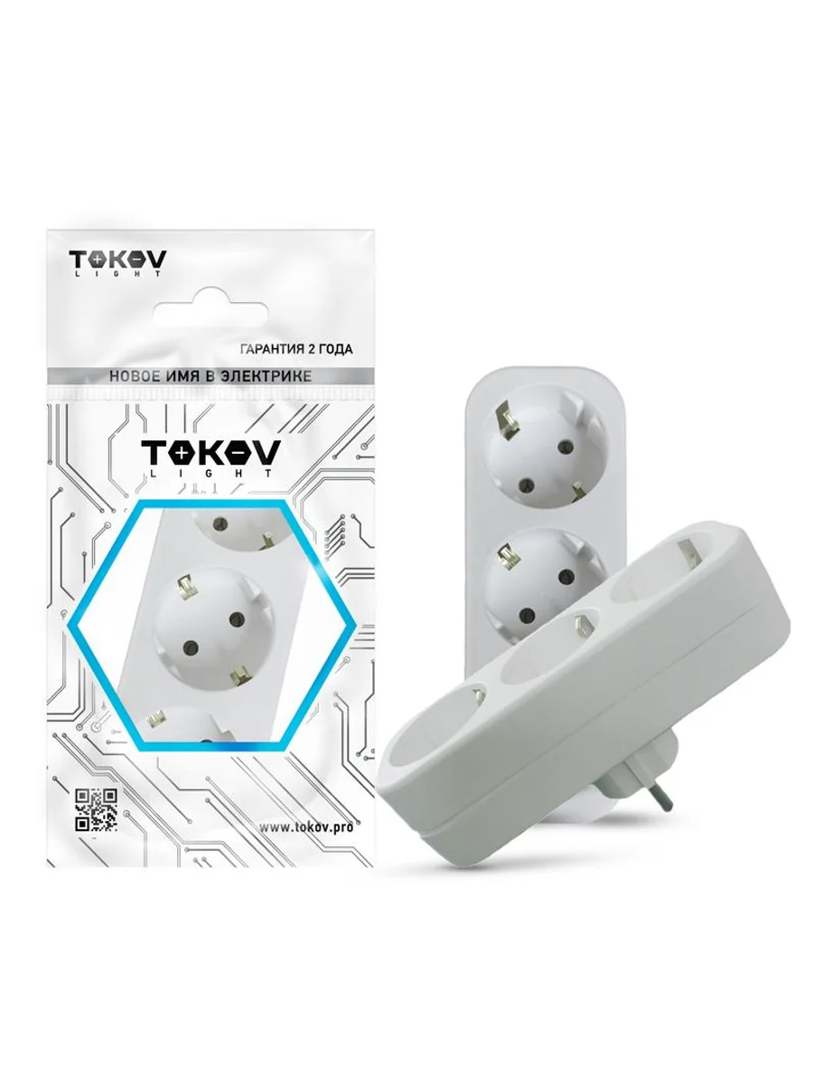 Разветвитель 3-м с заземл. 16А 250В IP20 полипропилен бел. TOKOV ELECTRIC TKL-S3Z-C01