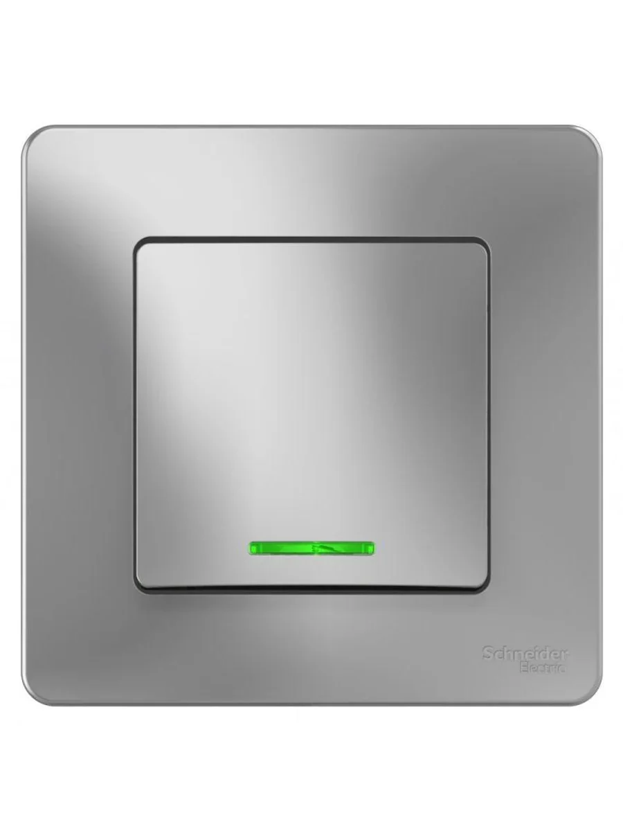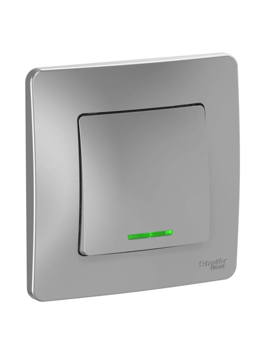 Выключатель Systeme Electric (ранее Schneider Electric) BLANCA (алюминий, скрытой установки) одноклавишный предназначен для сетей до 250В, на ток до 10А. Подсветка делает его легко находимым в отсутствие освещения. Выключатель подходит для большинства типов ламп, включая люминесцентные.